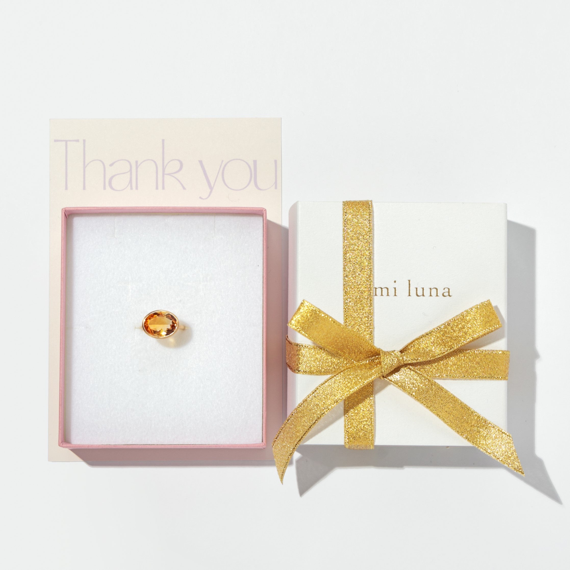 どんな色ともマッチしやすく、リングの重ね付けを楽しむことができるシトリンのドロップリングと