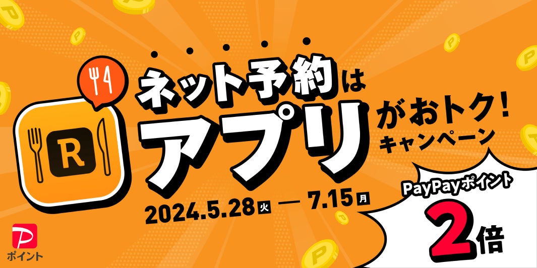 実名口コミのグルメ情報・予約サイト「Retty(レッティ)」を運営するRetty株式会社(本社:東京都港区、代表取締役:武田 和也)は「ネット予約はアプリがおトク!キャンペーン」を2024年5月28日(火)から2024年7月15日(月)まで開催します。期間中にRettyアプリで対象店舗をネット予約(即予約)すると、ディナーは予約人数一人につき通常50円相当のところ100円相当、ランチは予約人数一人につき通常10円相当のところ20円相当のPayPayポイントを来店後に進呈します。