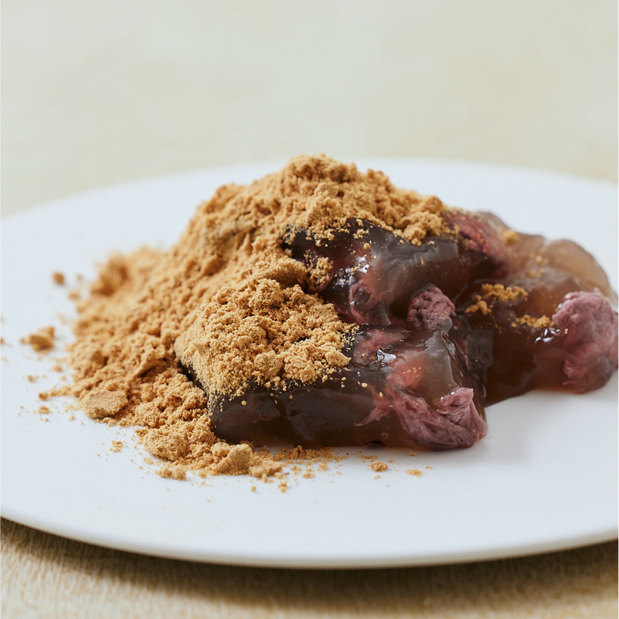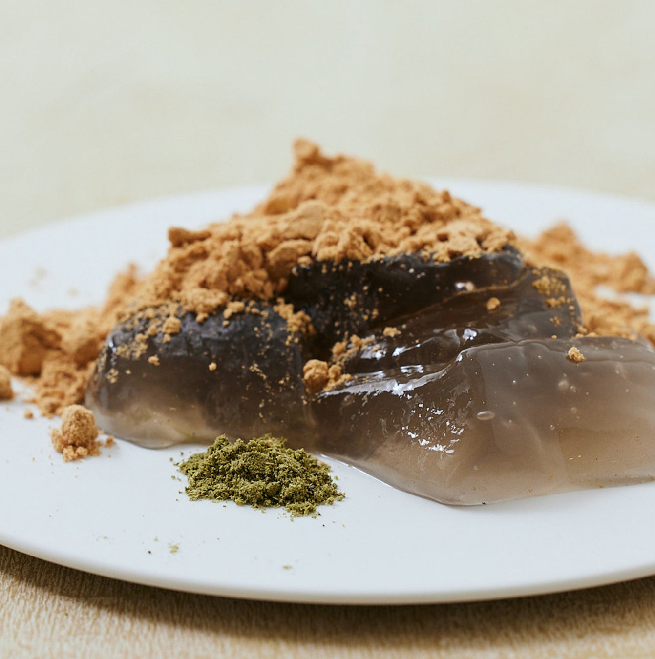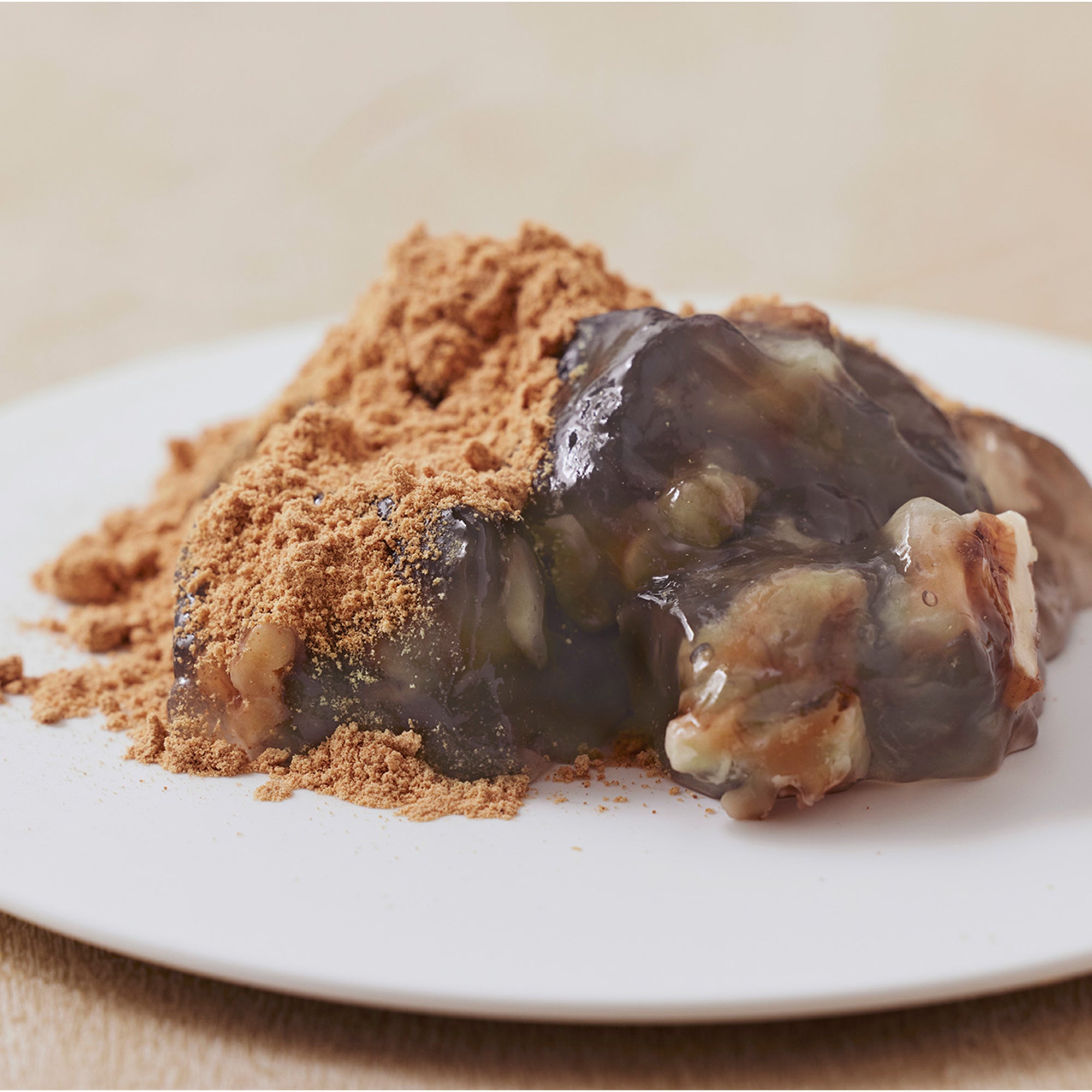 わらび餅のやさしい甘さと香ばしいくるみの香りと深い味わい。ごろごろ入ったくるみの食感がくせになる五感で楽しむわらび餅です。