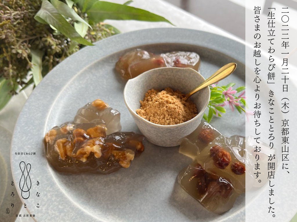 生仕立てわらび餅“きなこととろり”2022年1月20日(木)本日グランドオープン! あなたの近くに、京都生まれのちょっといいわらび餅