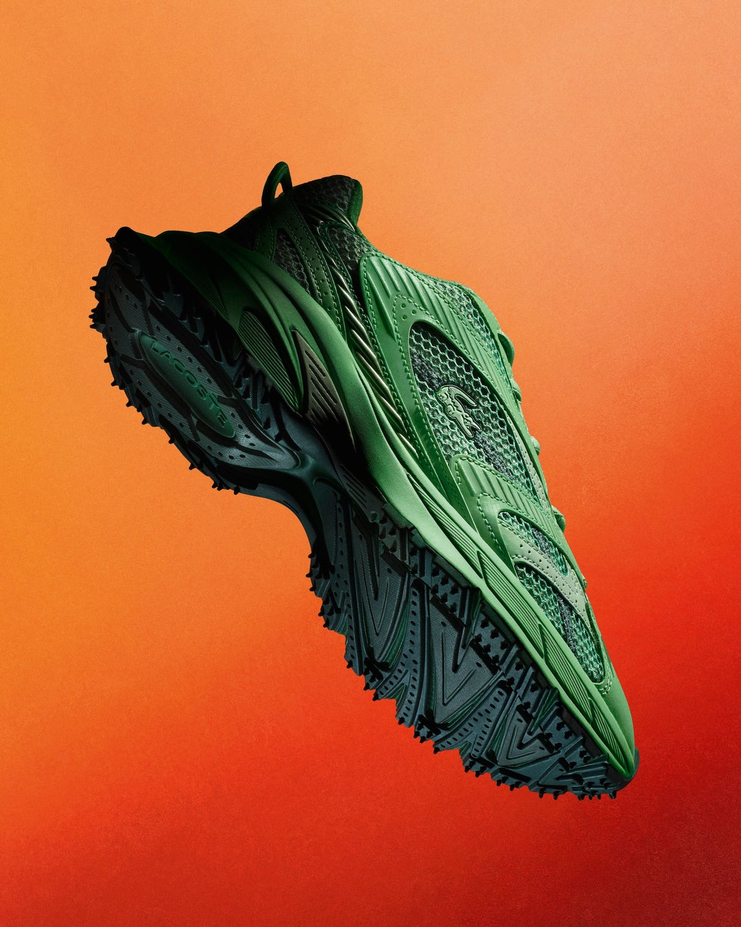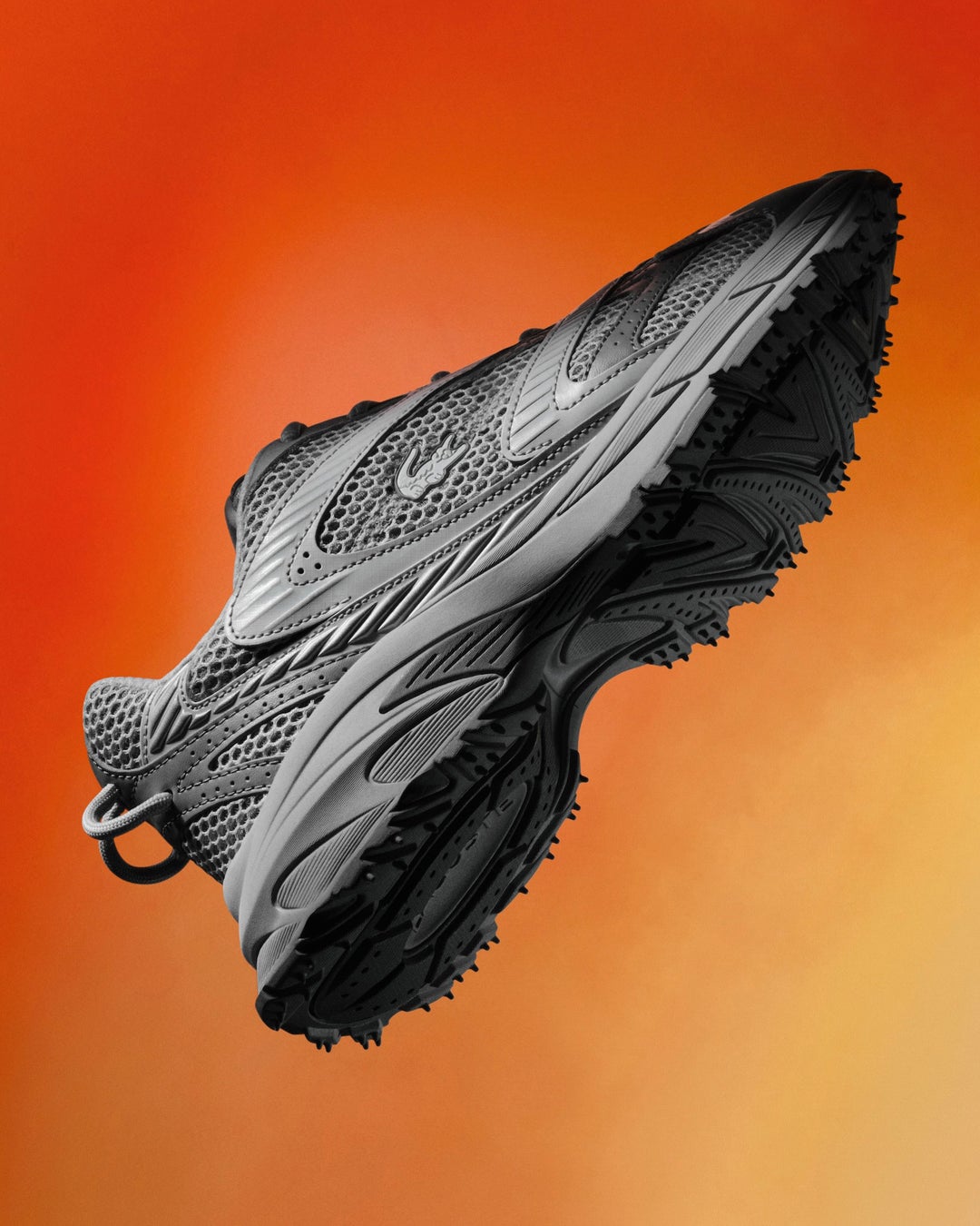 L003 NEO SHOTでは、ハイファッションの創造性にスポーツウェアの革新性をブレンド。ランニングテイストを斬新なフォルムに落とし込むことで、大胆な一歩を踏み出しています。ラコステのワニは単なるシグネチャーディテールではありません。特異なエートスであり、自信にあふれた前進を表しています。スニーカーは、軽量で通気性のあるサンドイッチメッシュのアッパー、ヌバックのトゥキャップ、目を惹く光沢感のあるPUとシンセティックレザーのオーバーレイ、そしてTPUのワニロゴを特徴とする洗練されたシルエットです。EVAのミッドソールと、チャンキーで質感のあるラバーアウトソールのおかげで、グリップの効きや安定性、そしてクッション性が向上しています。アール・デコ調のレース・ヒールループは、L003シリーズのシグネチャーから着想を得たものです。デザインのカラーは、目を惹く特徴的なカラーブロックを強調したパワフルなパレットで展開します。2025年春夏シーズンの主要カラーは、ブレージンググリーン、エレガントアイロングレー、シャドウブラック。特徴的で、現代的な雰囲気を漂わせる鮮やかなカラーを含め、メンズ・ウィメンズ各7色の展開です。