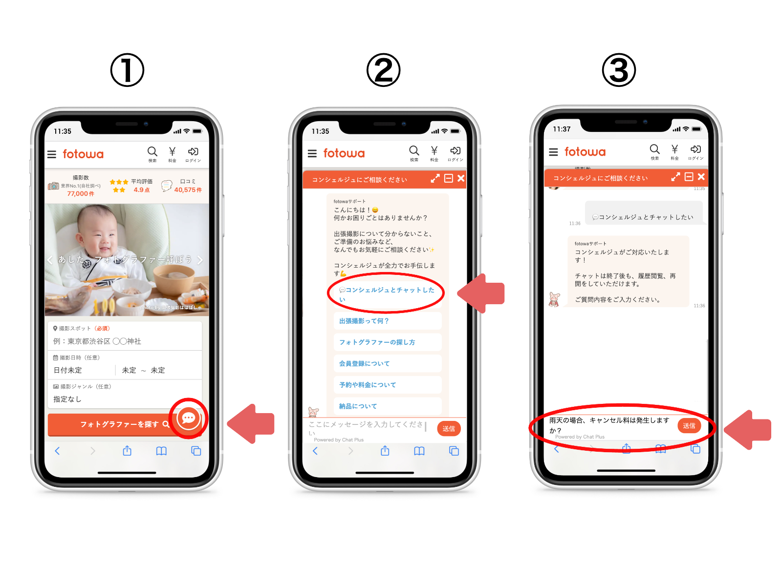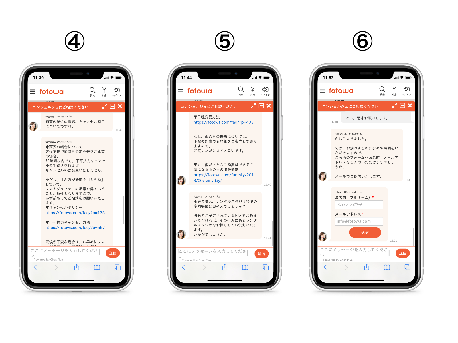 ⑤fotowaのサービスについての説明や、お困りごとを解決する方法を提案させていただきますので、内容をご確認ください。メッセージのやりとりは何回でも可能です。