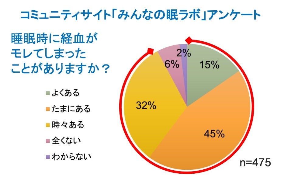 “経血モレ”の不安感は、睡眠の質にも影響を及ぼす可能性があります。 『まもら騎士』は“経血モレ”の不安を軽減しつつ寝心地を妨げにくい素材・構造のため、事前のモニター調査では『まもら騎士』を月経時に着用することで、「未着用時に比べて寝つきがよかった」、「不安が解消されて、ぐっすり眠ることができた」 などの声がモニターの中から得られました。