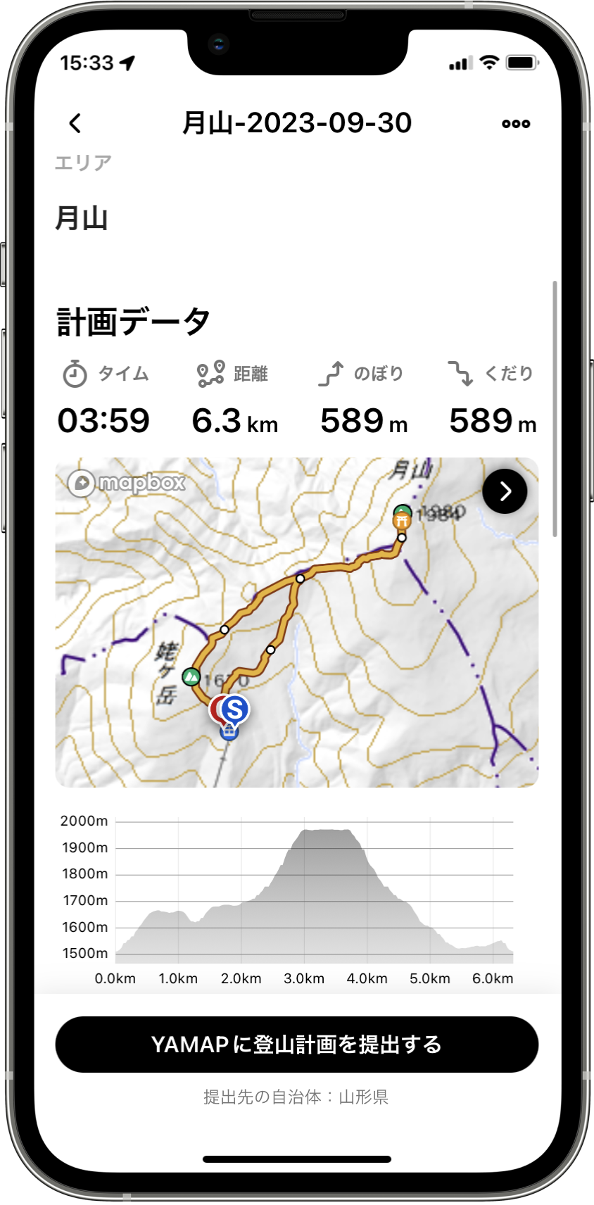 アプリで作成した登山計画書をそのまま山形県警察に提出
