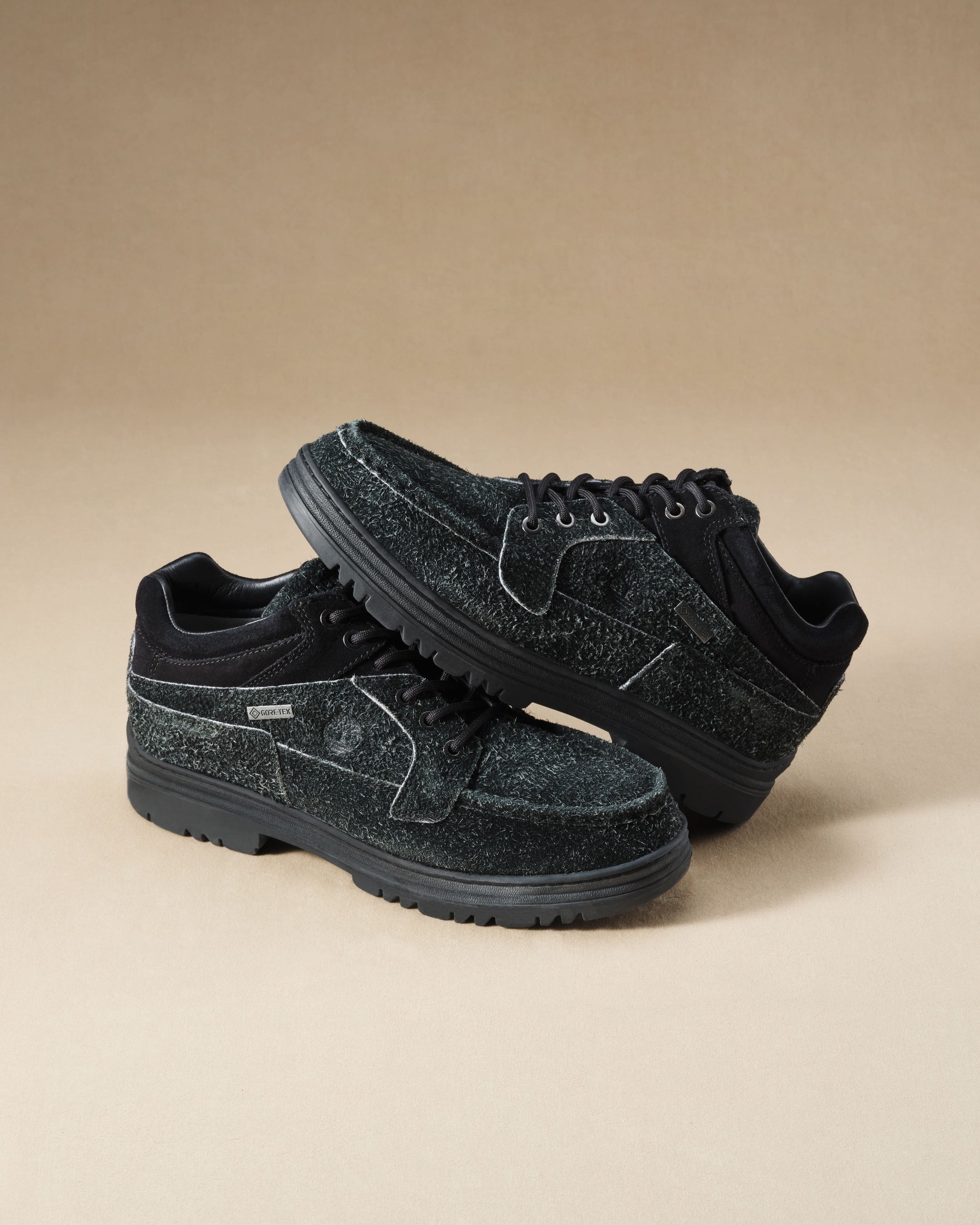 “6インチ プレミアムブーツ”は、オリジナルのシルエットはそのままにアッパー全体をウーブンレザーで構築することでラグジュアリーなムードを放つ1足に仕上げ、ライトベージュとオリーブの2カラーを展開。“ユーロハイカー”は、ゴアテックス®︎(GORE-TEX®︎)を搭載したフルグレインレザーで仕上げることで洗練されたアウトドアライフスタイルの雰囲気を醸し出し、ライトベージュとブラックの2カラーをそろえました。 “ワールドハイカー”は、日本では約10数年ぶりの復刻を果たすだけでなく、国内初展開のローカット仕様かつゴアテックス®︎を搭載し、ダークグリーンとブラックをラインナップ。“モック トゥ”は、アッパーに切り返しデザインを採用し、ブラックスエードとフロック加工を施した毛足の長いスエードで構築することで表情豊かに仕上げました。“スリーアイ ビブラム ソール ミュール”は、着脱の容易さと快適性を高めたミュールタイプにアップデートしたラストカラーが登場します。
