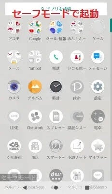 セーフモードとは、Androidのデフォルトアプリ以外のアプリをロードしないままで起動する方法です。