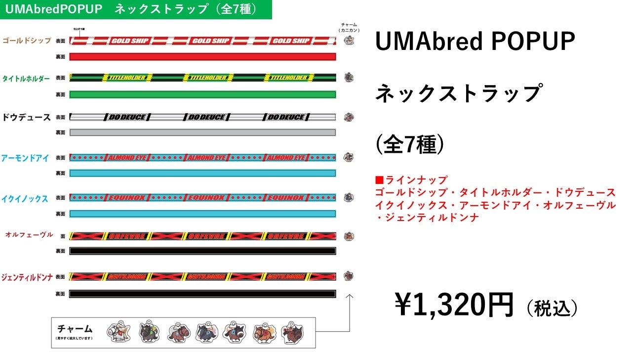 勝負服風デザインとなっており、先端には各UMAのチャームが付属。