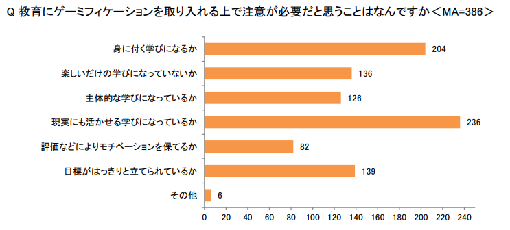 一方で、ゲーム感覚での学びの定着や現実世界での活用につなげるための注意が必要であると認識