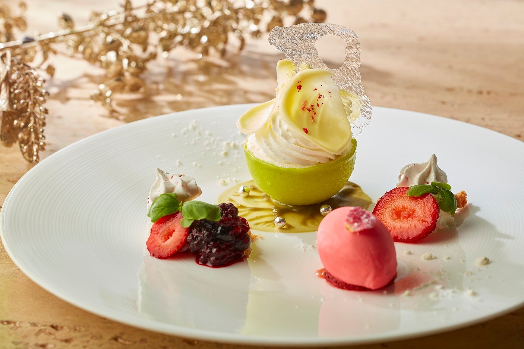 黒トリュフ香るソース」、デザートはパティシエがクリスマスの為に考案した特別デザートと