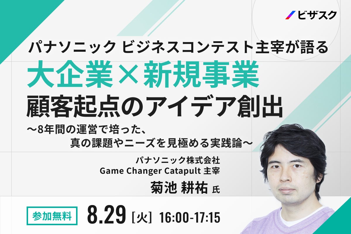 【8/29(火)16時】パナソニック ビジネスコンテスト主宰が語る 「大企業×新規事業 顧客起点のアイデア創出」無料オンラインセミナーを開催