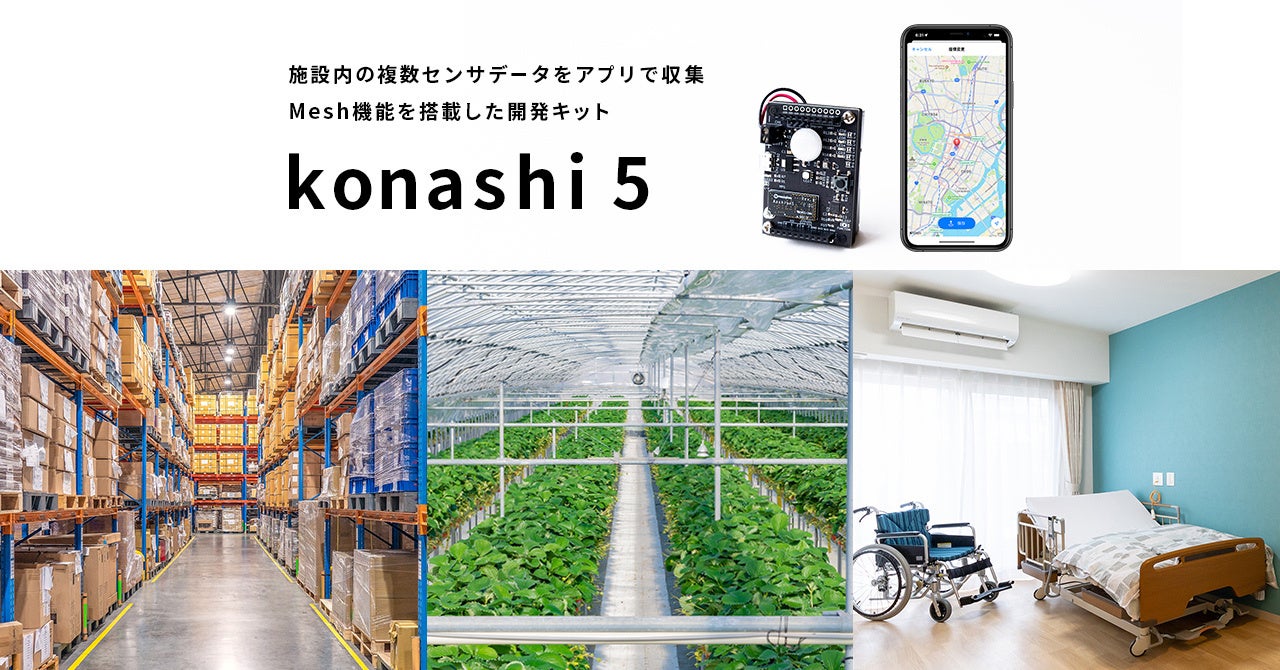 施設内の複数のセンサデータをスマホアプリで収集可能。Mesh機能を搭載した開発キット「konashi 5」販売開始