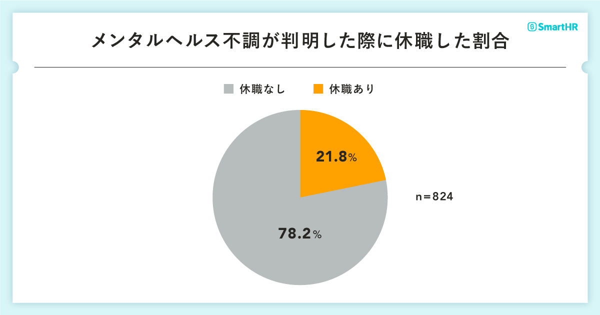在職期間中にメンタルヘルスに不調を感じたことがあると回答した人のうち、不調が判明したときに休職した割合は21.8%でした。