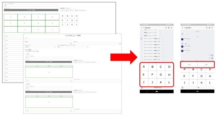 最大で12個のアクションに対応し、更に2つのメニューをタブで切り替えることができるようになりました。より柔軟で自由度が向上したリッチメニューの作成及び運用が可能になります。