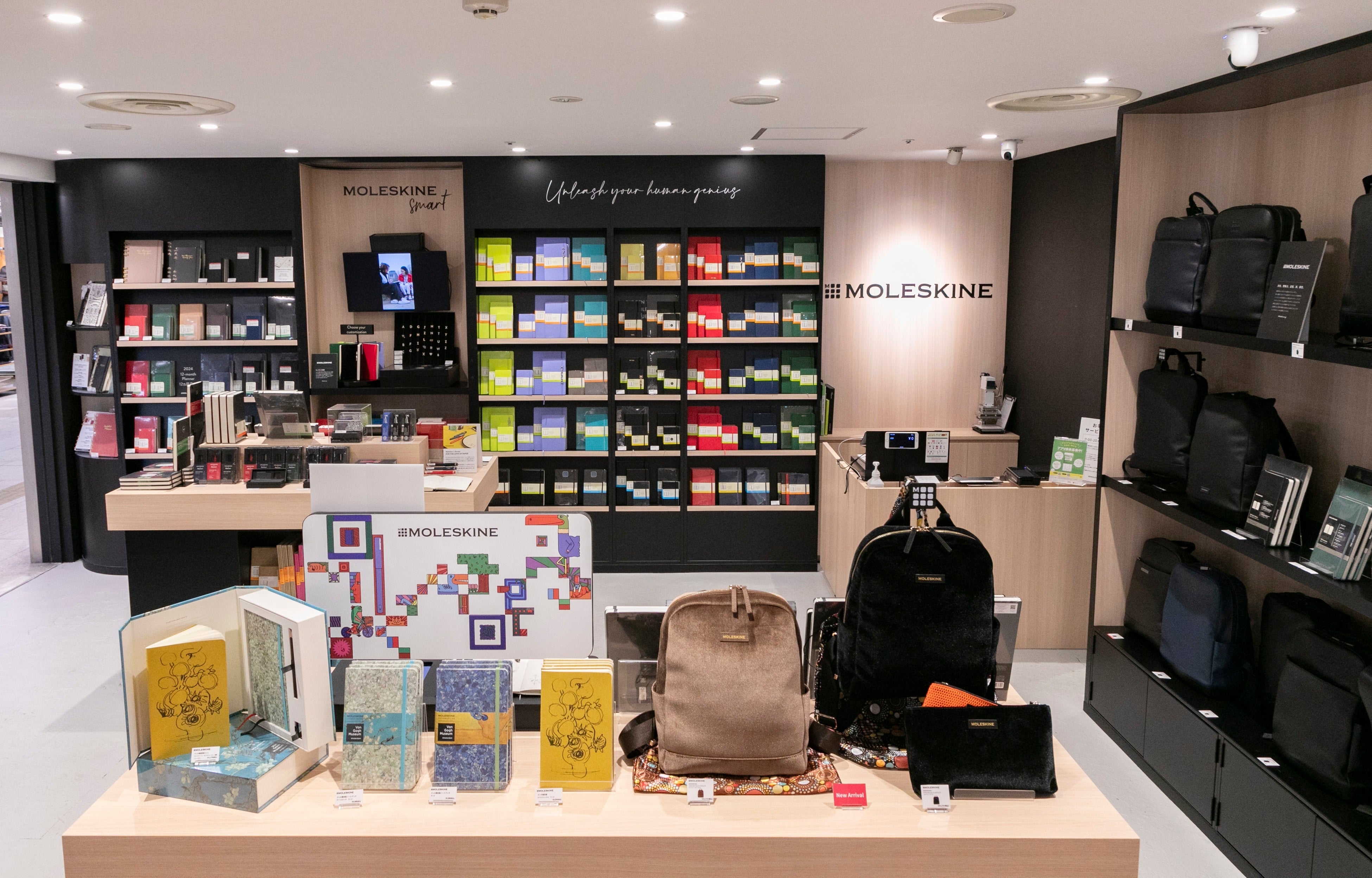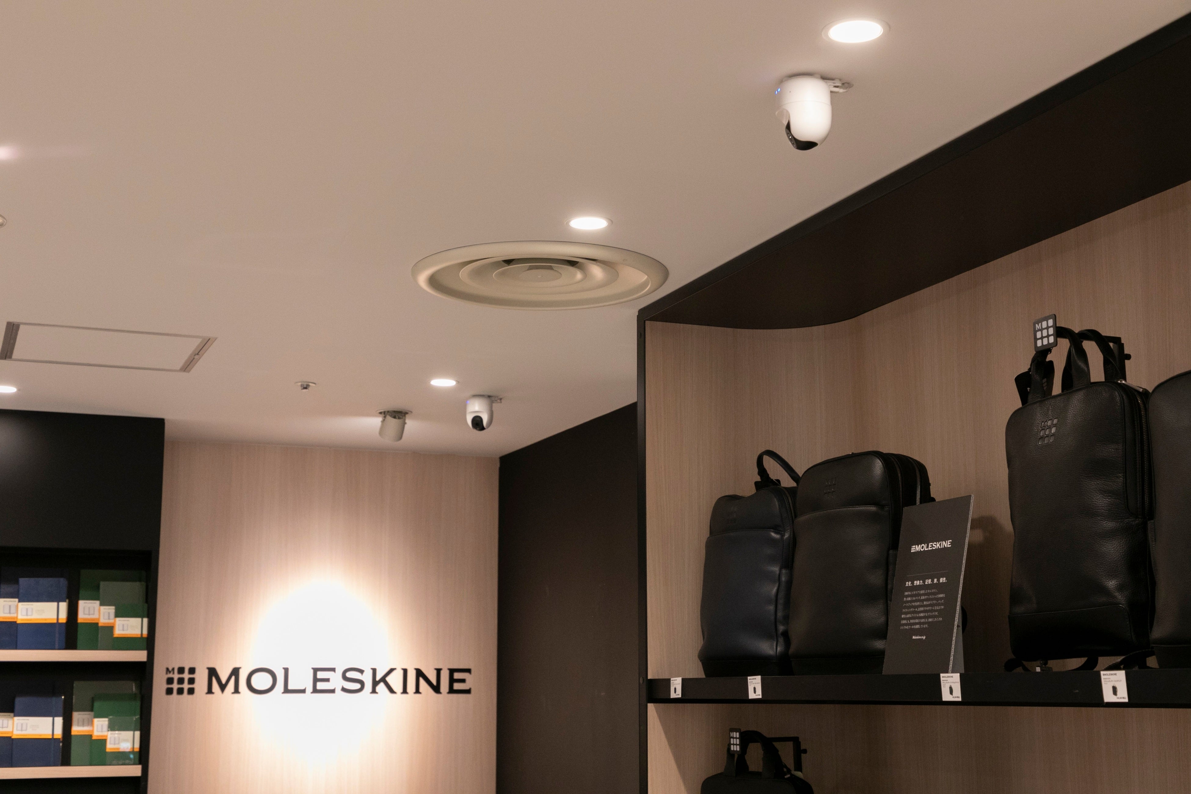 「Safie One」は、省スペースでの設置が可能なため、店舗のユニークなディスプレイとビジュアルをそのままに、ブランドアイデンティティを損ねることなく、店舗計測が可能となるものです。クリエイティビティを体感できるスペースを提供する同店においても、開放感のある環境で、モレスキンならではの魅力を存分に楽しめます。