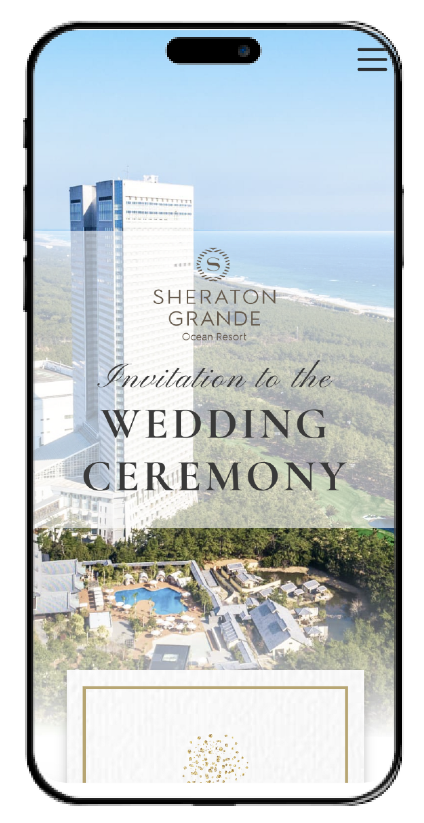 オリジナル写真でおふたりらしさを表現できるほか、宛名書き・梱包発送作業が不要なことから近年人気の「Web招待状」。30種類以上ものテンプレートの他、シェラトン・グランデ・オーシャンリゾートオリジナルデザインからお選びいただけます。返信されたゲスト情報(氏名、アレルギー情報、出欠情報、住所など)は「Oiwaii」に自動で反映され、お客様ご自身による入力の手間が大幅に削減されます。