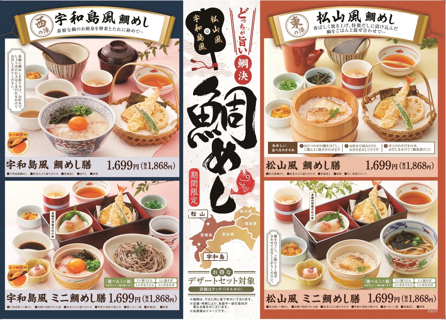 鯛が大好きという方、愛媛に行きたいけど中々行けないという方などなど、是非この機会に和食さとで「鯛めし対決」をお楽しみください。