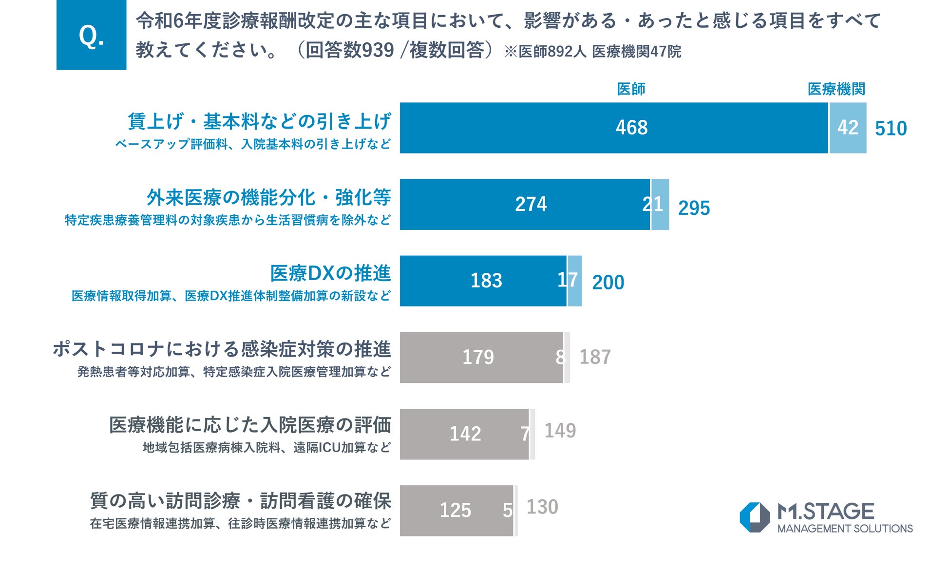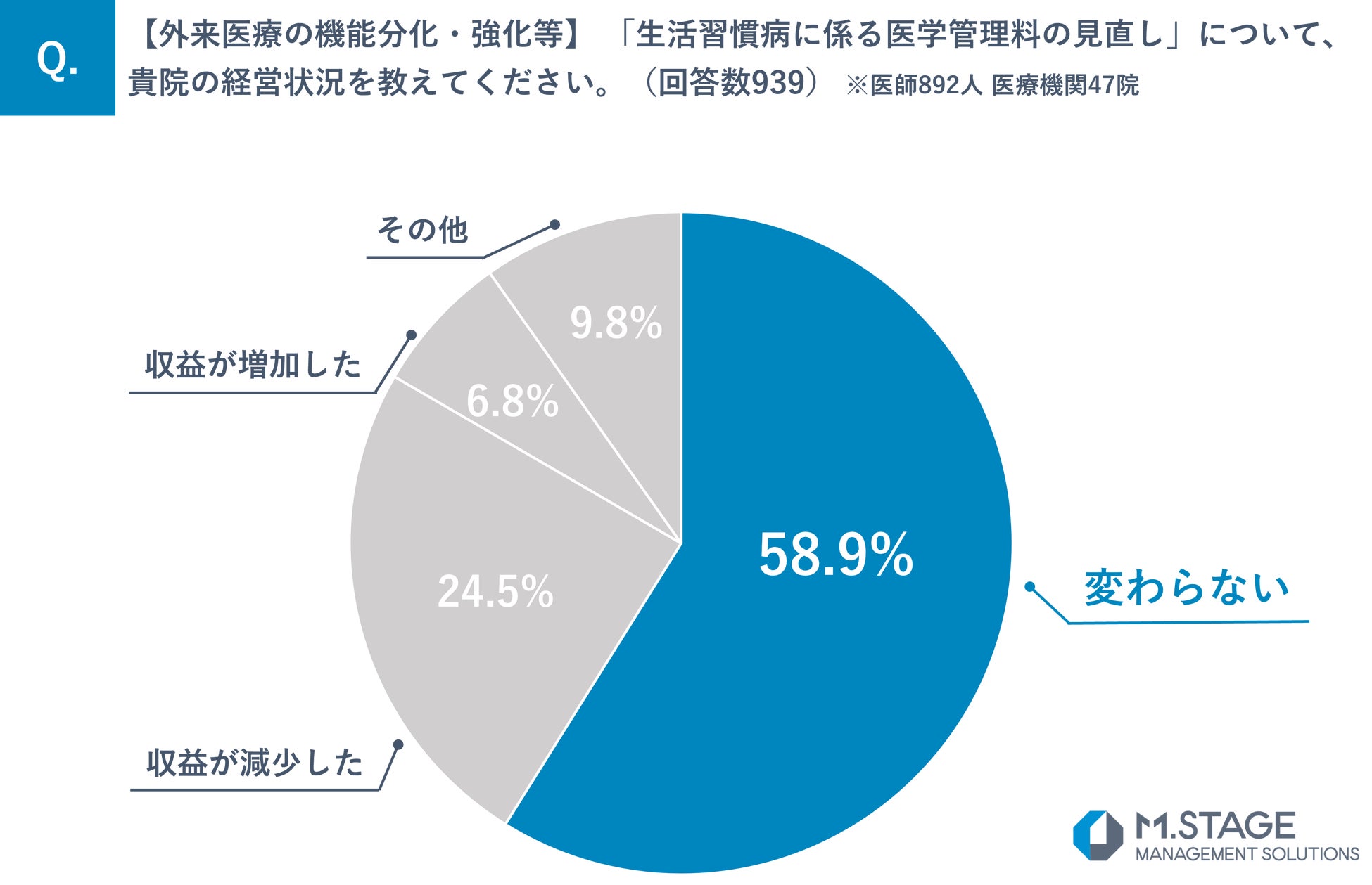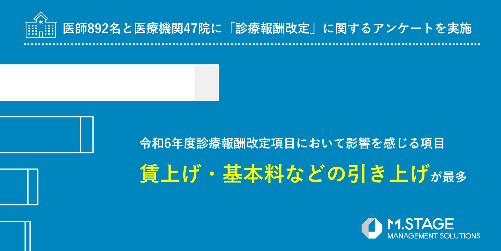 医業承継M&A支援サービスを提供する株式会社エムステージマネジメントソリューションズ(東京都品川区、代表取締役:田中宏典)は、医師892名と医療機関47院を対象に令和6年度「診療報酬改定」に関するアンケート調査を実施しました。