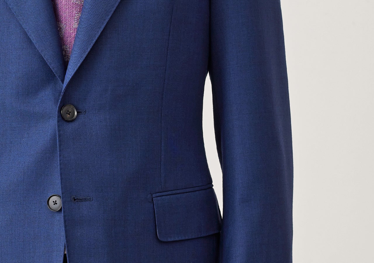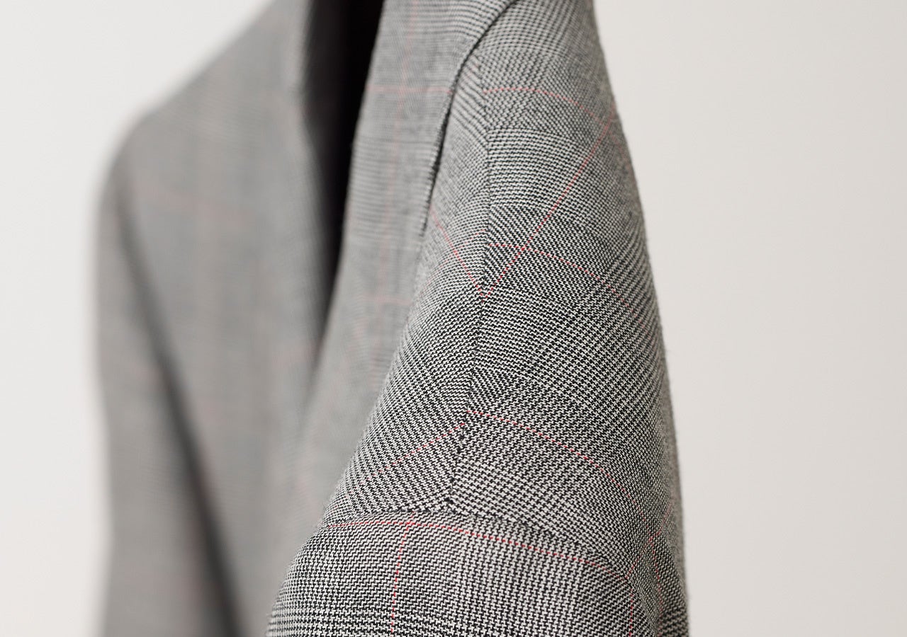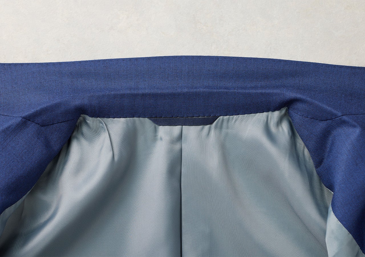 肩先から上襟にかけてのぼりのラインも美しく、どんな体型の人が着ても首回りに吸い付いて、着ていて楽なスーツになります。