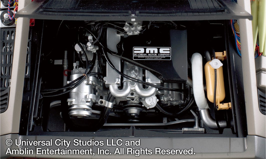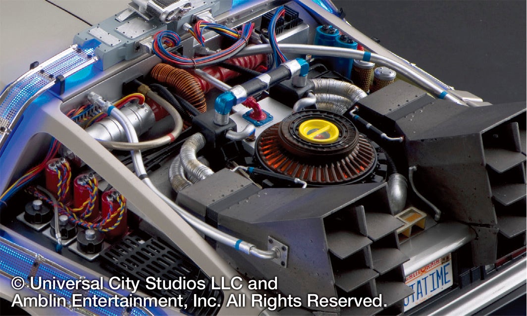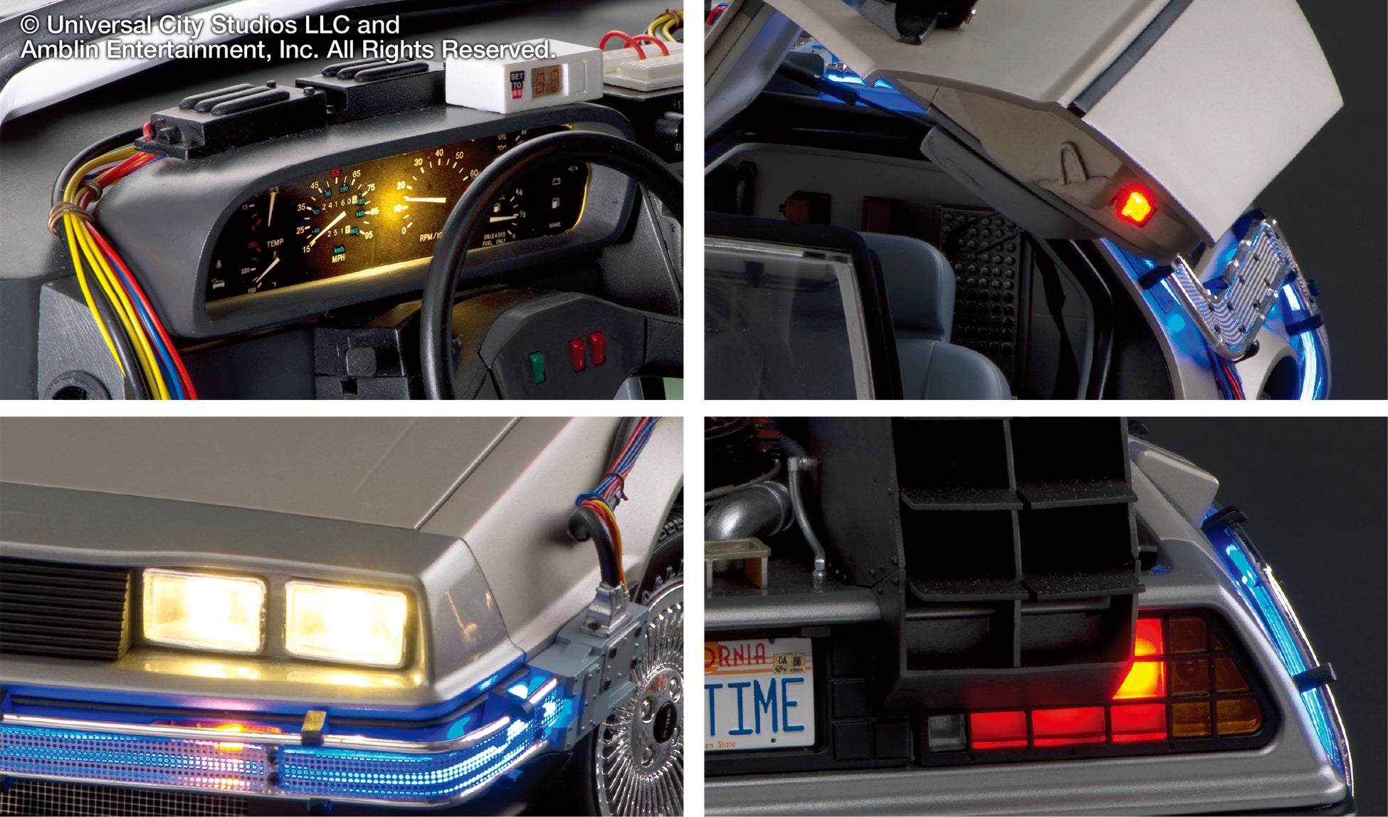 映画『バック・トゥ・ザ・フューチャー』に登場するタイムマシンは実在する市販車が基にデザインされており本シリーズでは、ヘアライン加工が施されたダイキャストのメタルボディやV6エンジンなど、劇中に登場するタイムマシンを1/8スケールで忠実に再現。ガルウイングドアやサイドウィンドウ、タイヤなど豊富な可動部や、ヘッドライトやブレーキランプなどをはじめとする多数の点灯ギミックで劇中のタイムマシンを演出します。