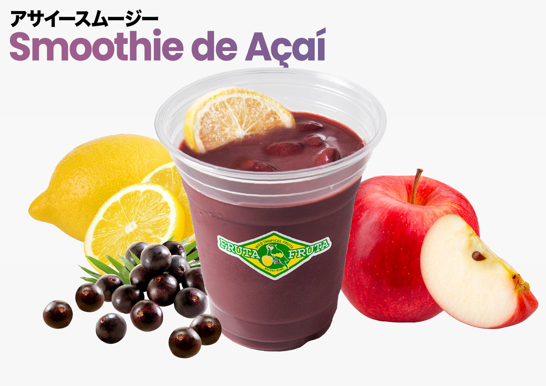 フルッタフルッタ特製、さっぱりとした「飲むアサイーボウル」です。アサイーとアップルジュースをブレンドしレモンをプラスして爽やかでごくごく飲めるアサイースムージーに仕上げました。