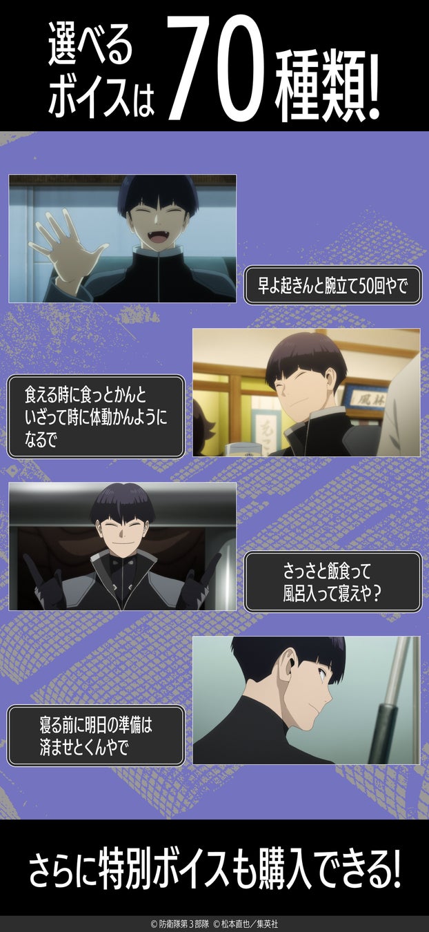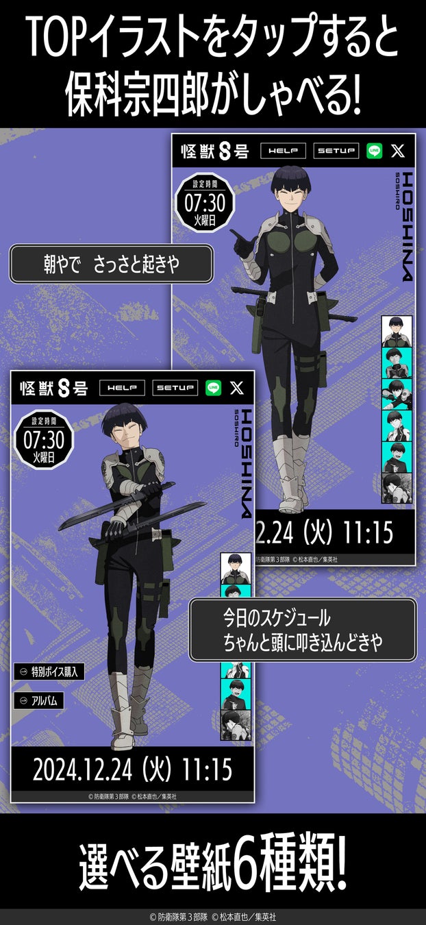 『怪獣8号』保科宗四郎アラーム 特設ページにおいて、ボイスの一部を特別公開しています。ぜひご確認ください。
