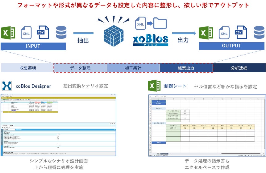 「xoBlos」は、Excelの複雑なデータの整理・成型から帳票の出力に至る様々な手作業を自動化できるプラットフォームです。