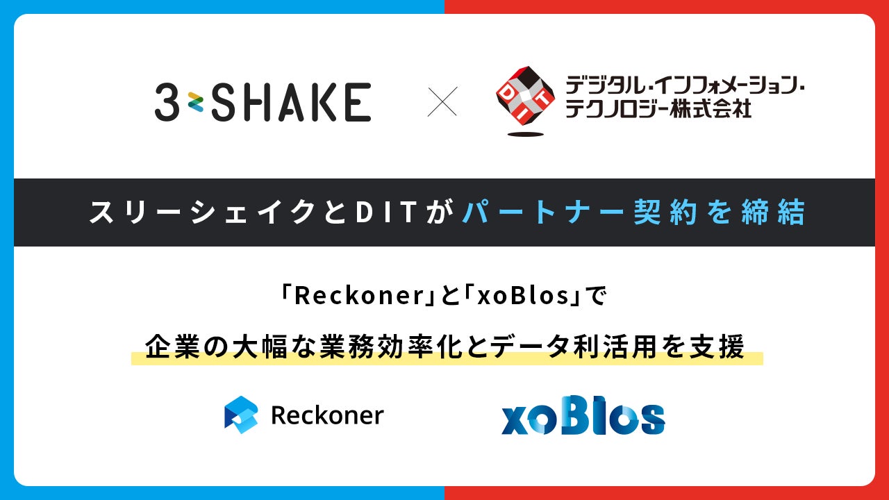 スリーシェイクとDITがパートナー契約を締結、「Reckoner」と「xoBlos」で企業の大幅な業務効率化とデータ利活用を支援