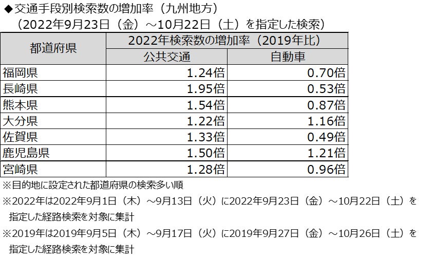 2 九州各県を目的地とした検索は「公共交通」が軒並み増加傾向