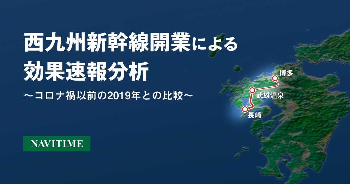 株式会社ナビタイムジャパン(代表取締役社長:大西 啓介、本社:東京都港区)の交通データ事業は、2022年9月23日(金)の「西九州新幹線」開業に伴う効果分析の速報値を発表いたします。
