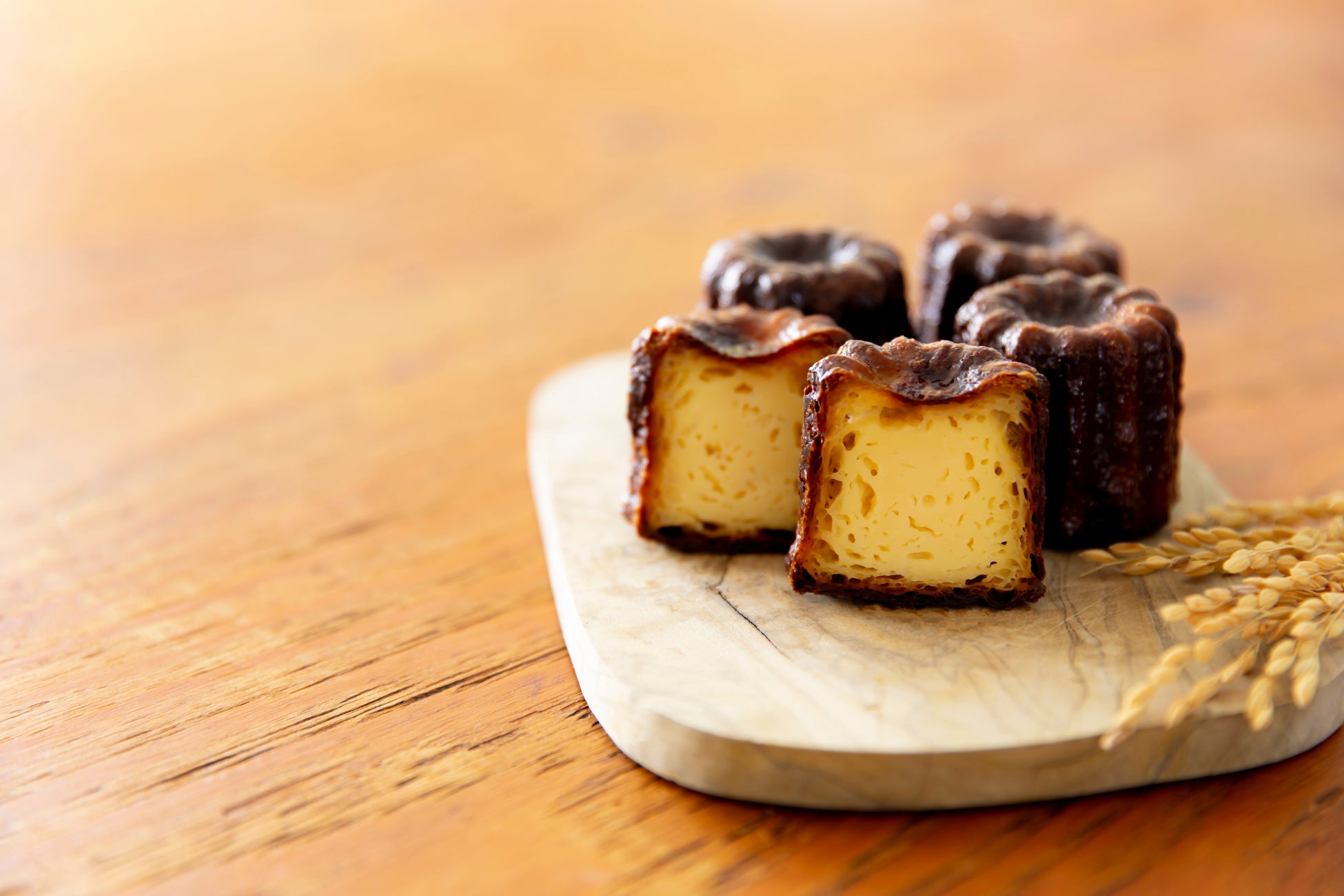 コメトコメのカヌレは小麦粉を一切使わず、国産米粉100%で作り上げています。深い焼き色と、カリッとした食感が特徴で、カラメルソースを焦がして焼き上げたような香ばしい味わいです。中はまるで濃厚なプリンの様な風味と、もっちりしっとり食感が特徴です。