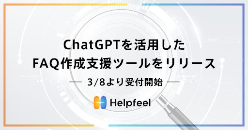 株式会社Helpfeel(京都府京都市 代表取締役/CEO:洛西一周 以下、当社)は、米OpenAIによる「ChatGPT」を活用したFAQ作成支援ツール「Helpfeel Generative Writer」をリリースすることをお知らせいたします。現地時間3月1日(水)に正式公開されたChatGPTのAPI(gpt-3.5-turboモデル)を活用したFAQ作成支援ツールで、お客様の負担を軽減します。