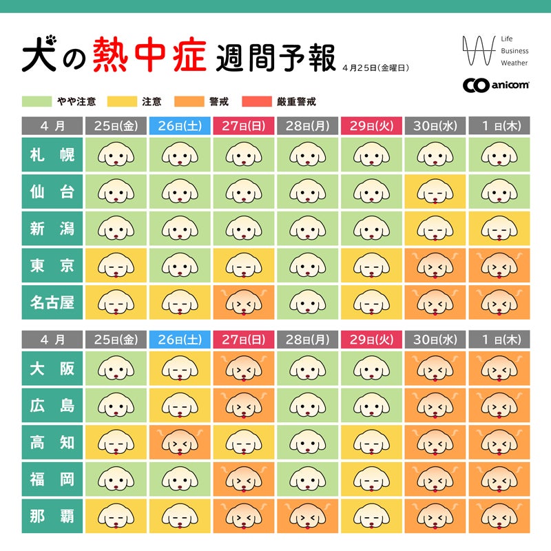 犬と猫の「熱中症週間予報」、4月24日から配信開始