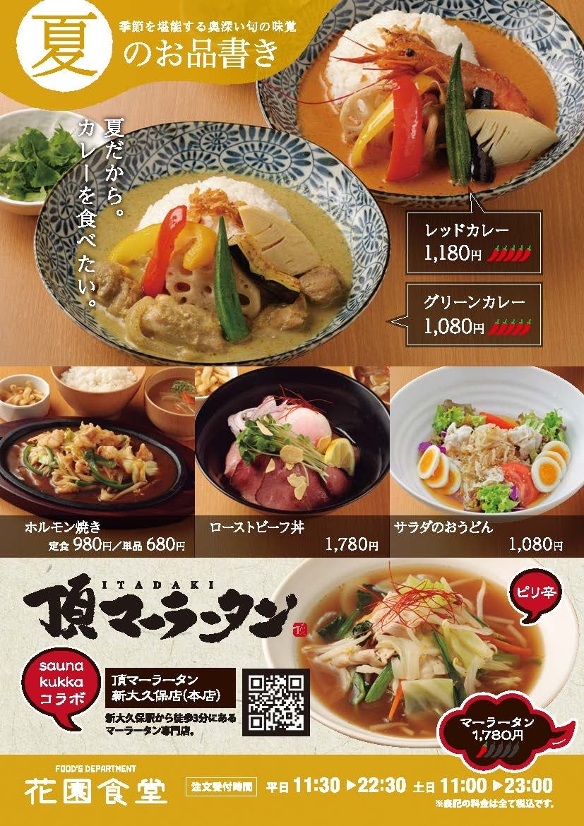 花園温泉 sauna kukka(サウナクッカ)で『新宿名物元祖和製マーラータン|麻辣湯』提供開始!おうちでマーラータン株式会社とB2B事業本格始動で麻辣湯を通じてフードロス推進と健康支援に貢献!