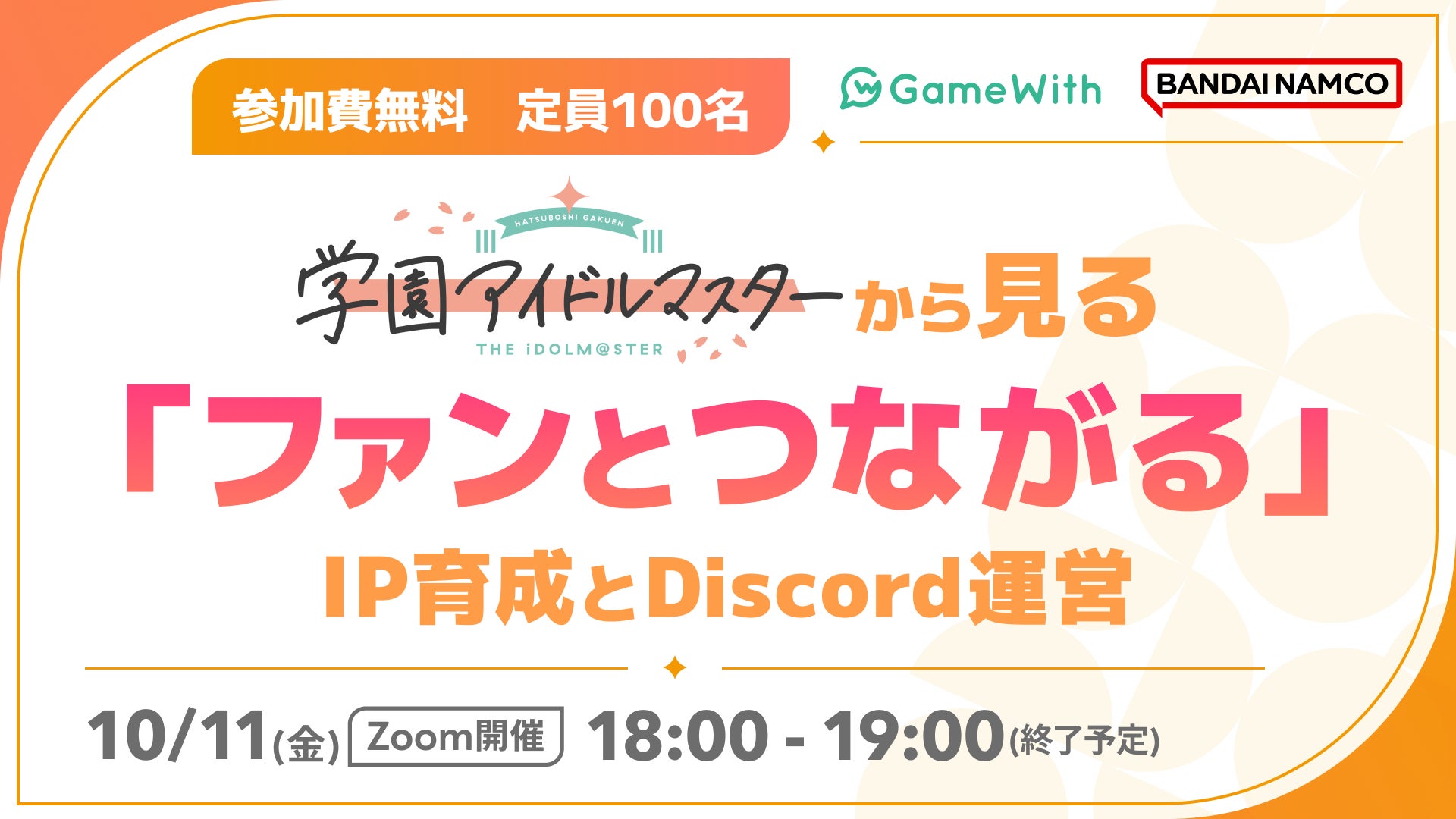 【10月11日(金)18時~GameWith × バンダイナムコエンターテインメント協力セミナー】『学園アイドルマスター』から見る「ファンとつながる」IP育成とDiscord運営