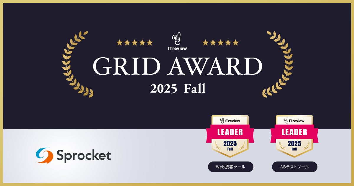 CX改善プラットフォームを提供する株式会社Sprocket(本社:東京都品川区、代表取締役:深田 浩嗣)は、アイティクラウド株式会社が運営するIT製品レビュープラットフォーム「ITreview(アイティレビュー)」の「ITreview Grid Award 2025 Fall」において、前回に引き続き、Web接客ツール部門/ABテストツール部門で最高位の「Leader」を受賞しました。