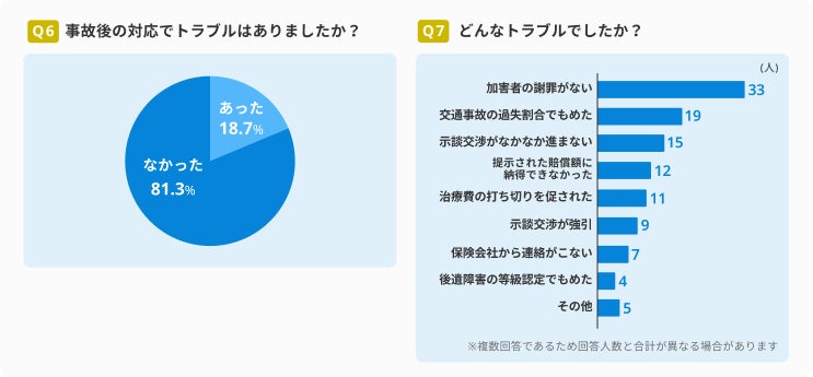 18.7%は交通事故後の対応にあたってトラブルがあった