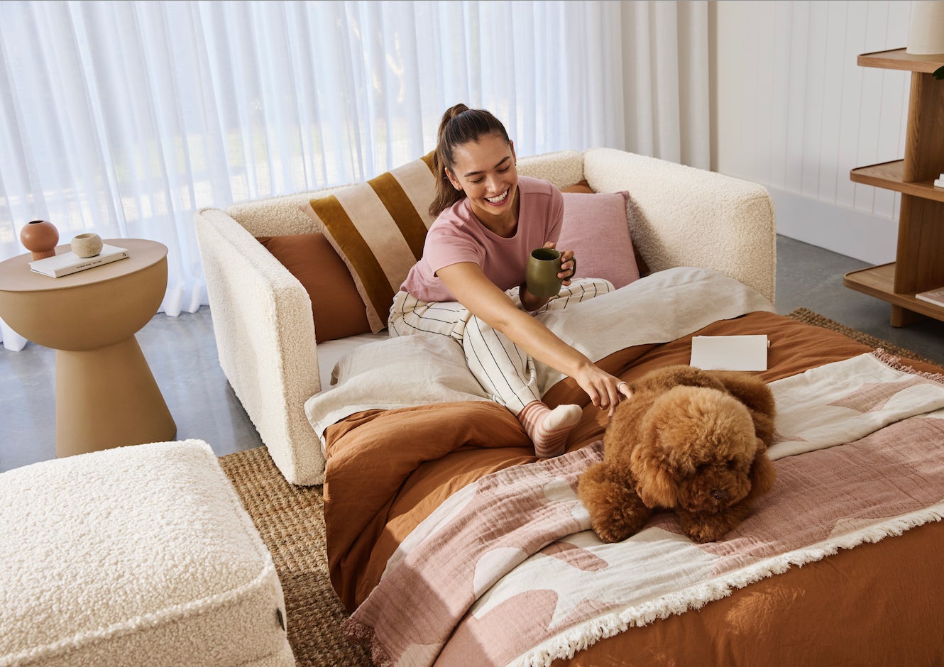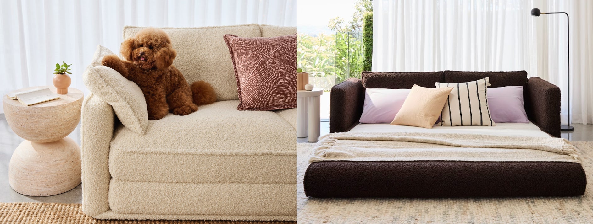 ソファーからベッドにわずか5秒で切り替えられるCUSHYは、寝転んでも座っても1日中快適。独自素材クラウドセル™を採用し、マットレスのような寝心地を実現しました。3層構造のしっかりとしたサポート力で、昼も夜も心地よさが続きます。サイズは1人掛けシングル(高さ67.5x幅119x奥行98cm)、2人掛けセミダブル(高さ67.5x幅142x奥行98cm)、3人掛けクイーン(高さ67.5x幅182x奥行9cm)の3タイプから選べます。