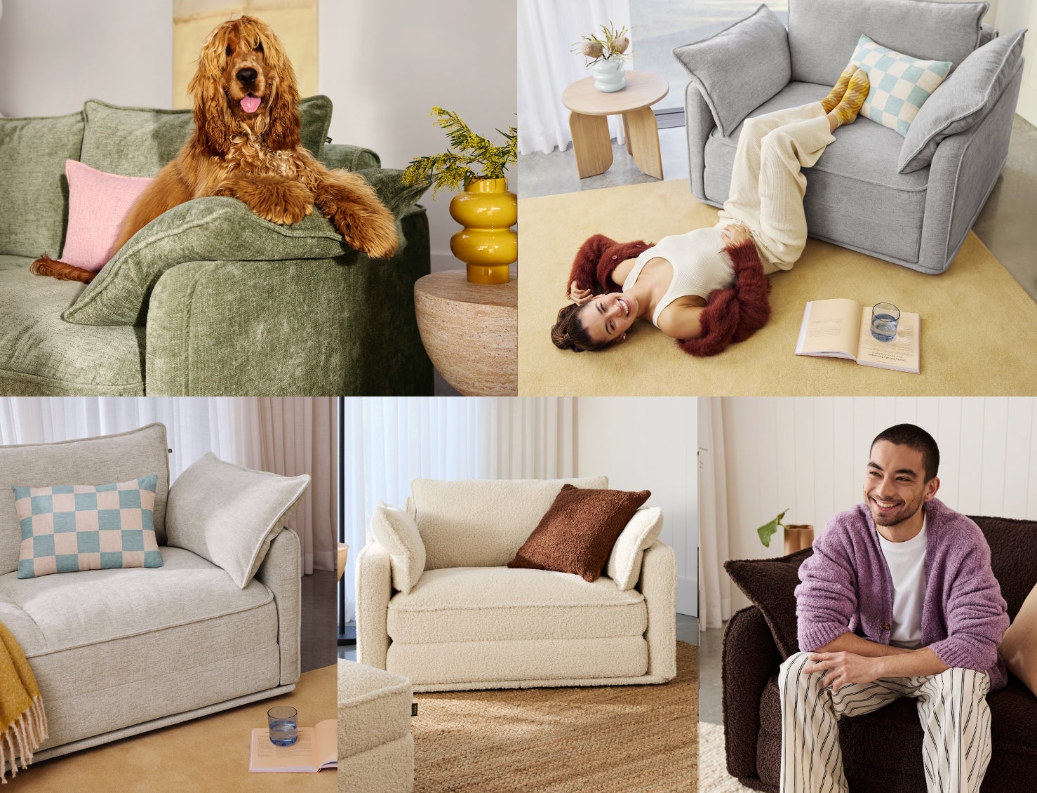コアラこだわりのファブリックは、オーストラリアの自然からインスピレーションを得た落ち着いた色合いが魅力。新たにビロードのような滑らかな質感の「ユーカリガーデン」「ムーンライトシルバー」「ホワイトビーチ」と、ふんわりした肌触りの「カカオノワール」「サマークラウド」が仲間入りしました。シックなアースカラーの色合いは、日本のインテリアにも馴染みやすいです。