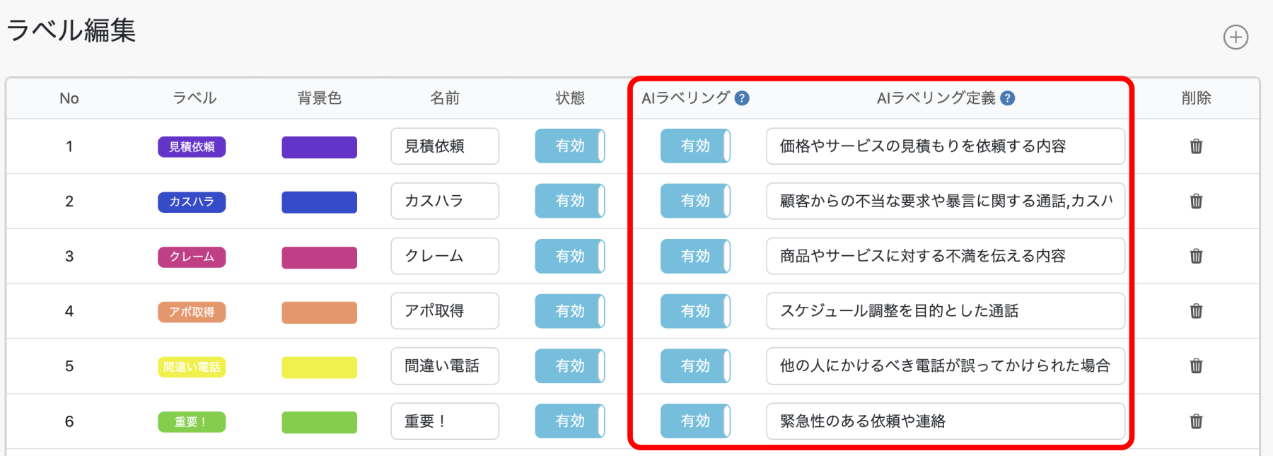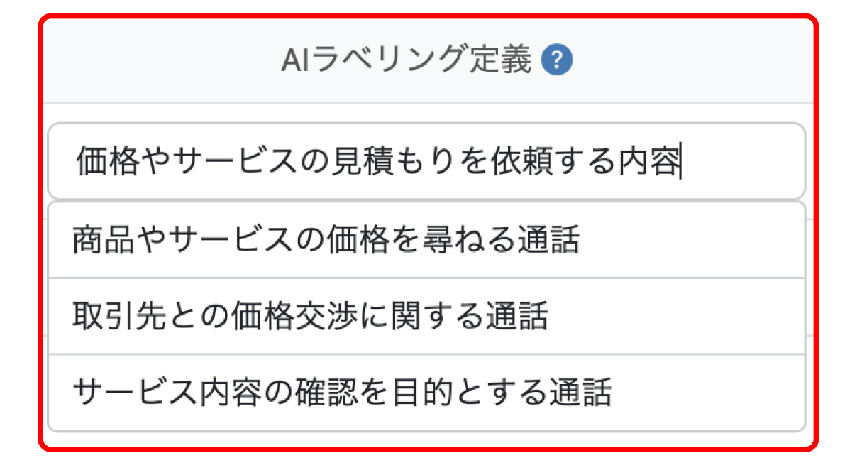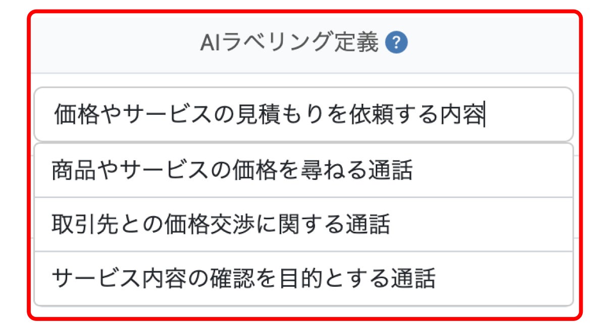 通話履歴に付与するラベルの定義づけを細かく設定しておくことで、より正確な分類が可能となります。さらに、AIがラベルの定義づけを自動で提案し、より高精度な通話の分類をサポートします。