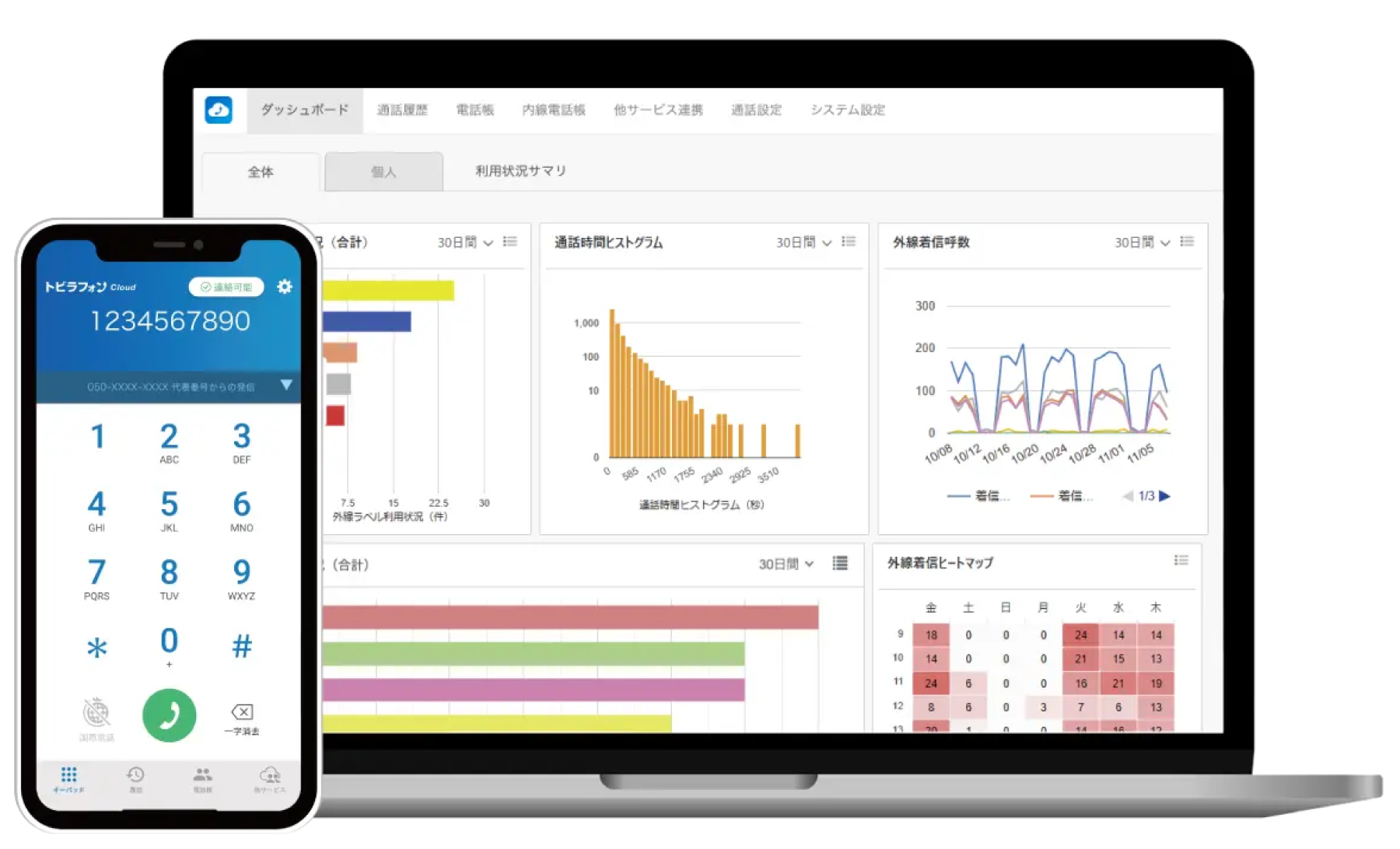 スマホアプリやPC、IP電話機等のマルチデバイスに対応しており、働き方に合わせた電話環境を実現します。