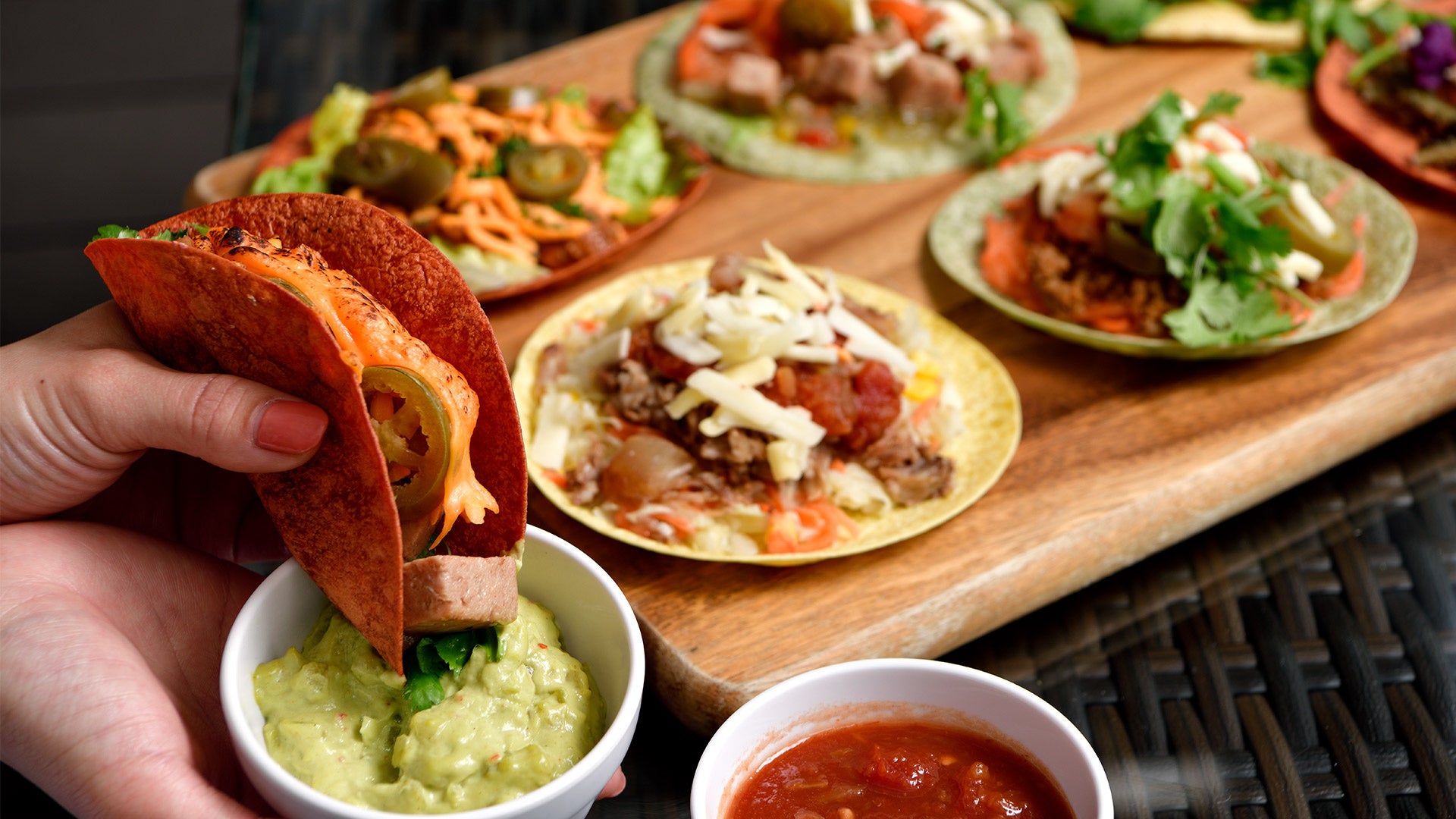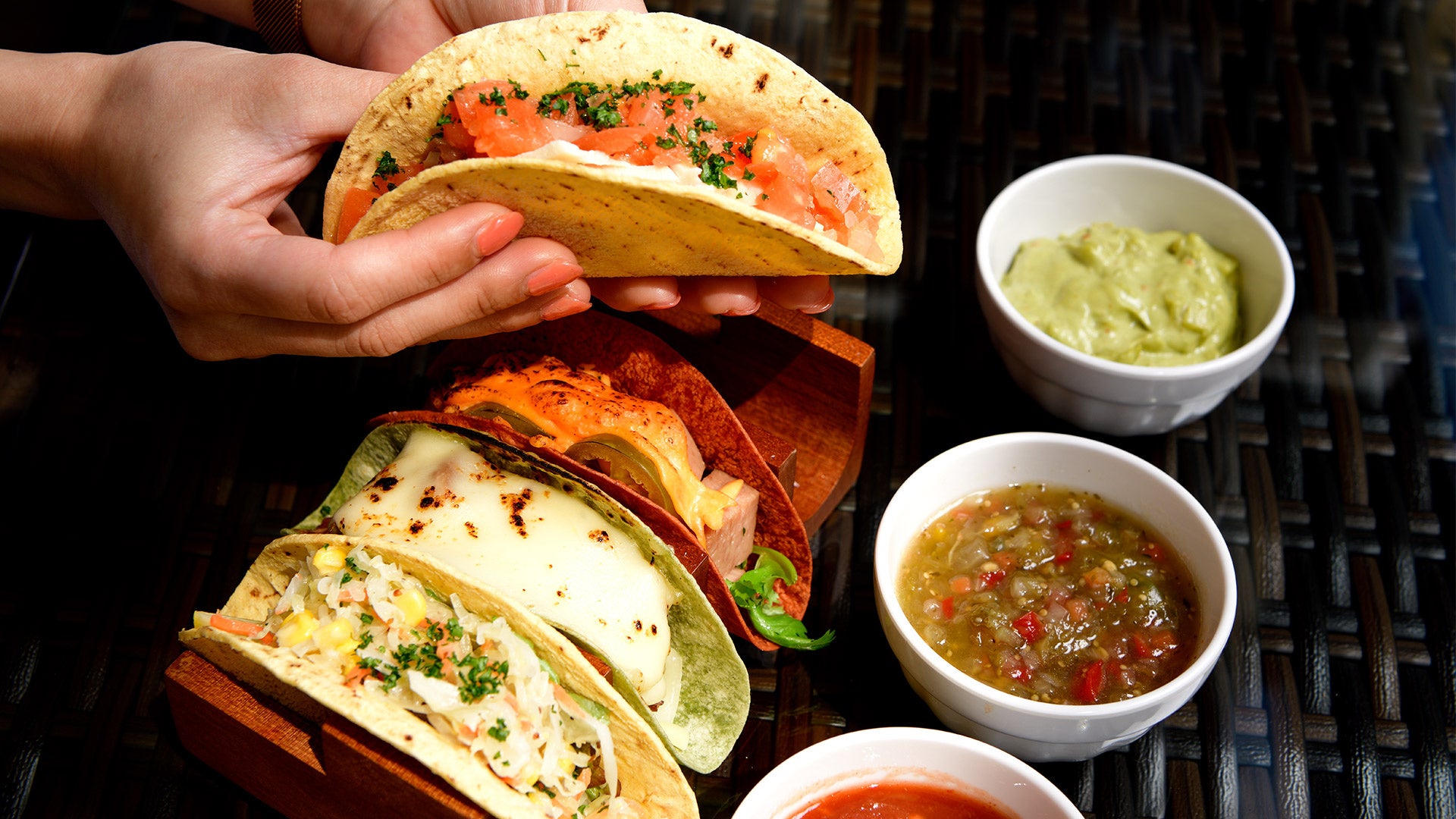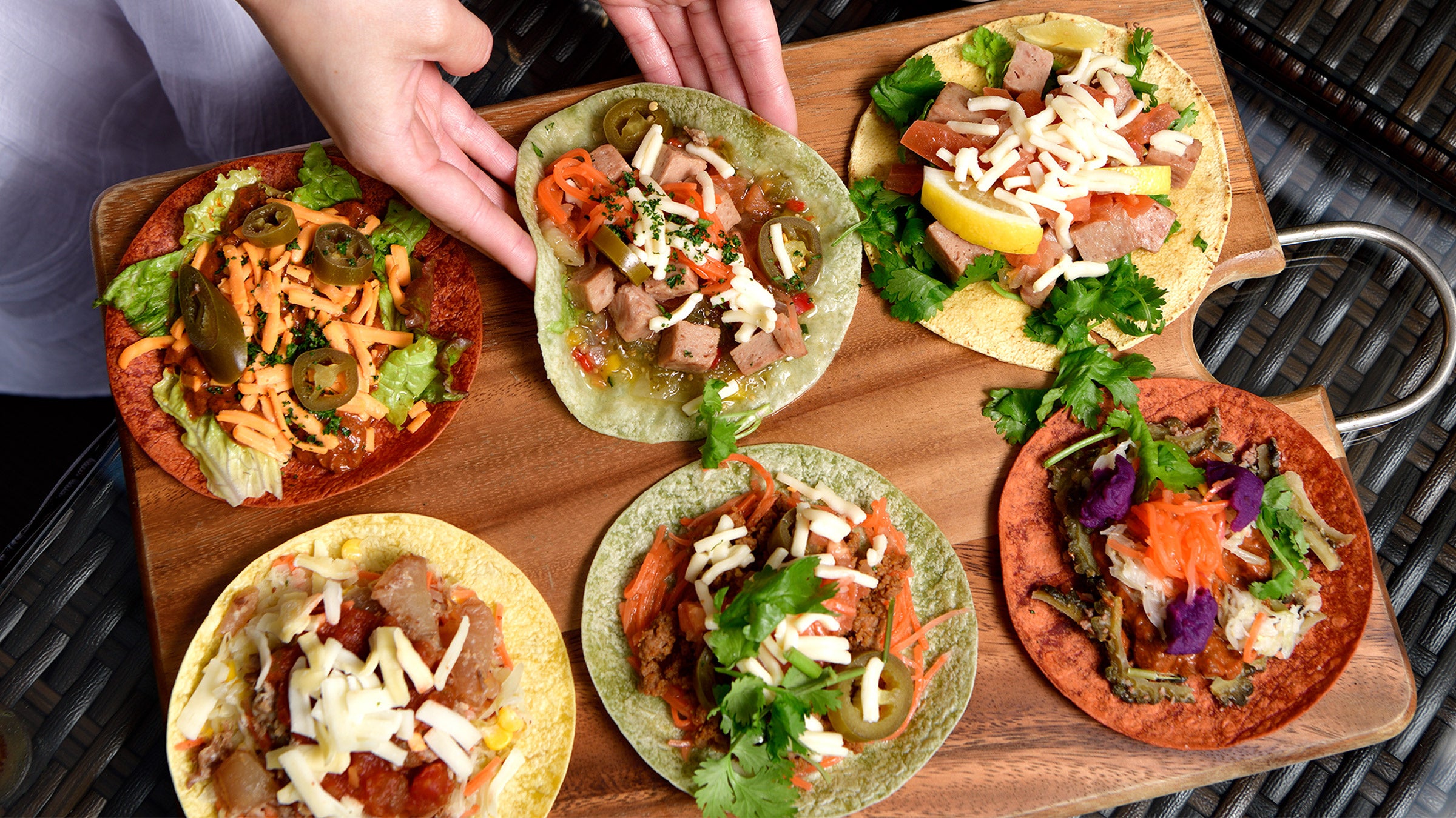 ソースに溺れる背徳感と圧倒的満足感、全23種の厳選具材と3種のカラフルなトルティーヤで仕上げる、あなただけのタコスをSNSに投稿して、沖縄を満喫するリゾートステイを手に入れよう