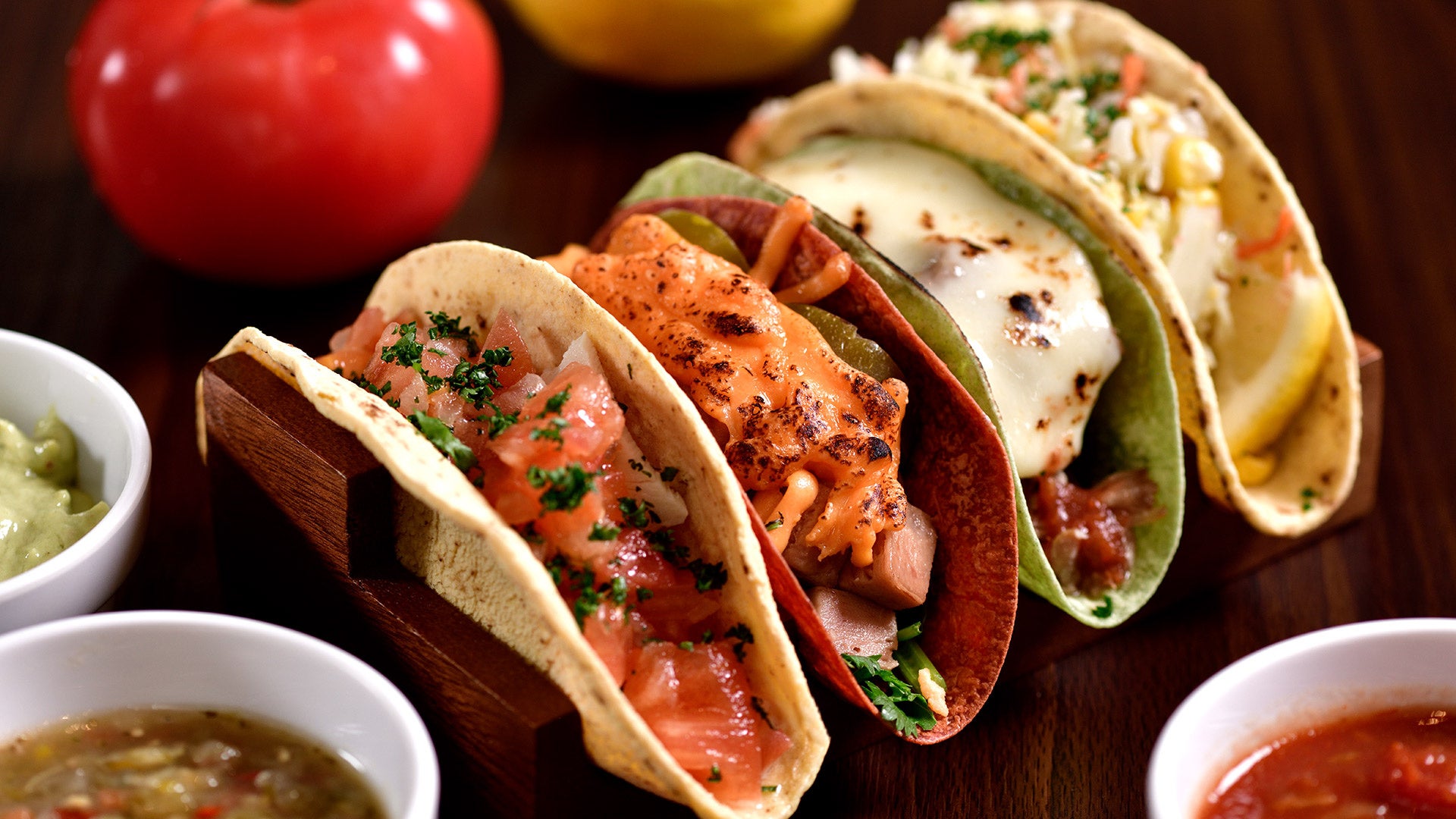 トルティーヤは黄色のコーントルティーヤに加え、赤・緑のフラワートルティーヤの3色展開。彩り豊かな具材を合わせることで、味覚だけでなく視覚でも楽しめる“映える”一皿に仕上がります。ソースに包み込まれるような背徳感とともに、満足感あふれる味わいをお好きなだけご堪能ください。