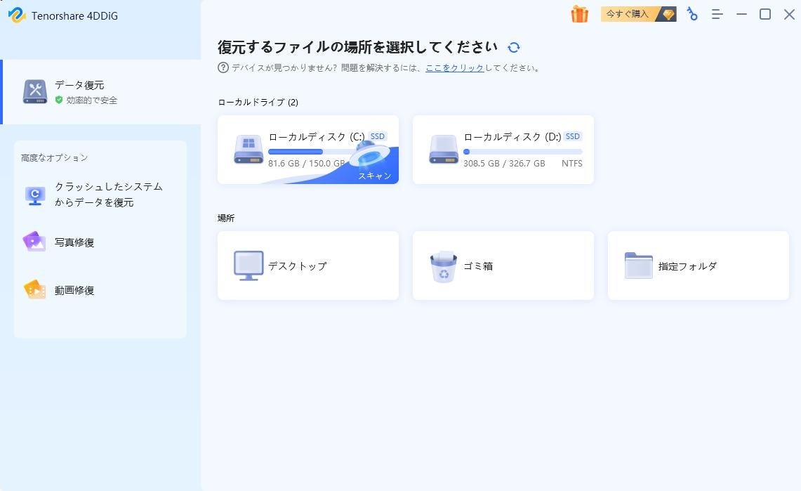 ゴミ箱から完全に削除したデータを復元したい場合は、データ復元ソフト「4DDiG」を利用するのがオススメです。シンプルなデザインで直感的に復元できますので、ぜひ活用してみて下さい。