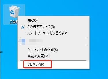 1.「ゴミ箱」のアイコンを右クリックして、「プロパティ」の設定を確認します。