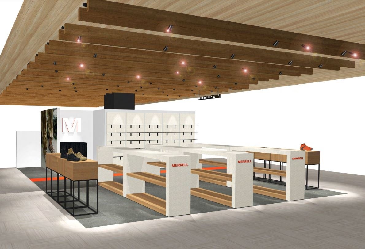 MERRELLの”アウトドアコンフォート“を体現する空間デザインが特徴現代的なライフスタイルとアウトドアの融合を実現した新コンセプトストア「MERRELL ルクア大阪店」