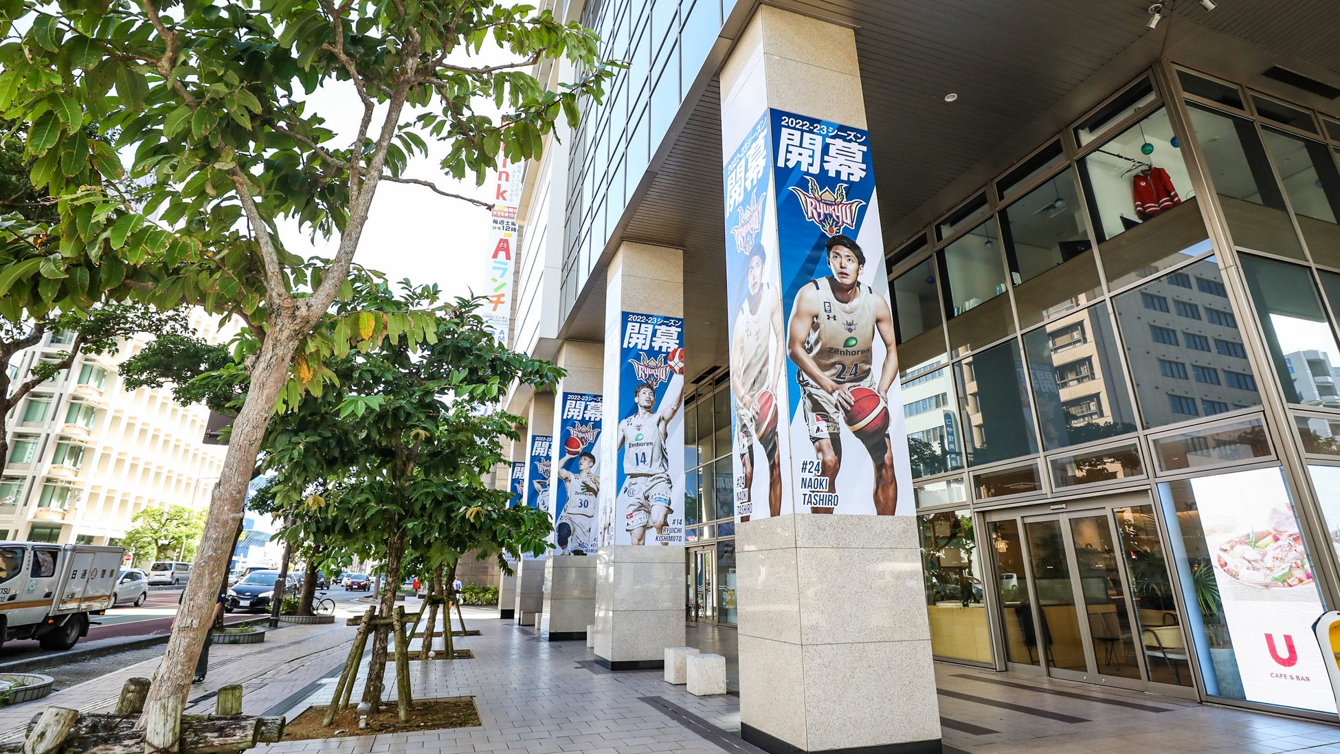 また、昨日9月21日(水)より、タイムスビルの58号線沿いの6本の柱がキングス仕様となっております。今シーズンも多くの皆さまと共に、「沖縄をもっと元気に!」していけるよう邁進してまいります。これからもキングスへの応援をよろしくお願いいたします。