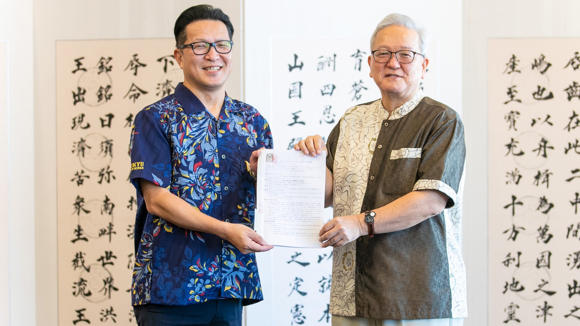 同調印式には株式会社沖縄タイムス社から武富和彦代表取締役社長がご出席し覚書の調印を行いました。昨シーズンに引き続きトップオフィシャルパートナーとして琉球ゴールデンキングスをサポート頂けることへ感謝申し上げます。