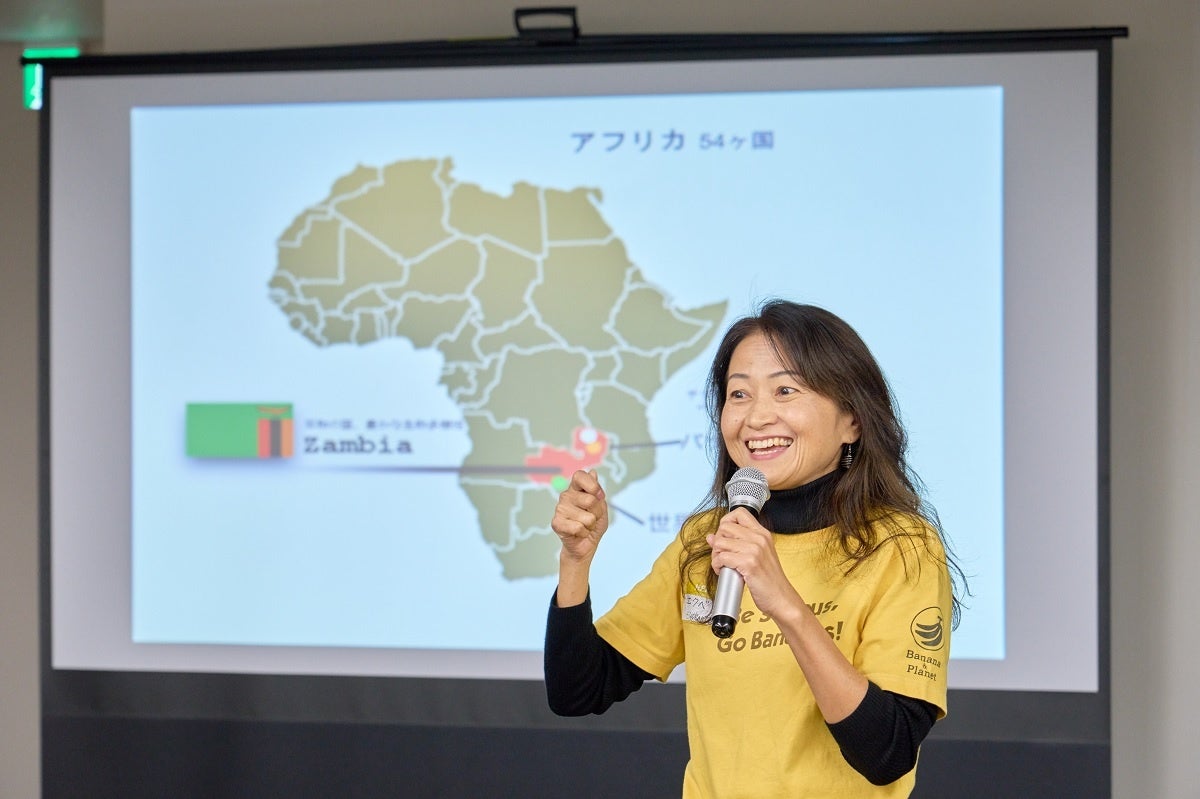 また、「One Planet Café Zambia」のエクベリ聡子様よりバナナペーパーを製造しているアフリカ・ザンビアの状況やバナナペーパーの価値についての講義を受け、SDGs、フェアトレードだけでなく、社会課題の解決に取り組む団体への理解を深めました。