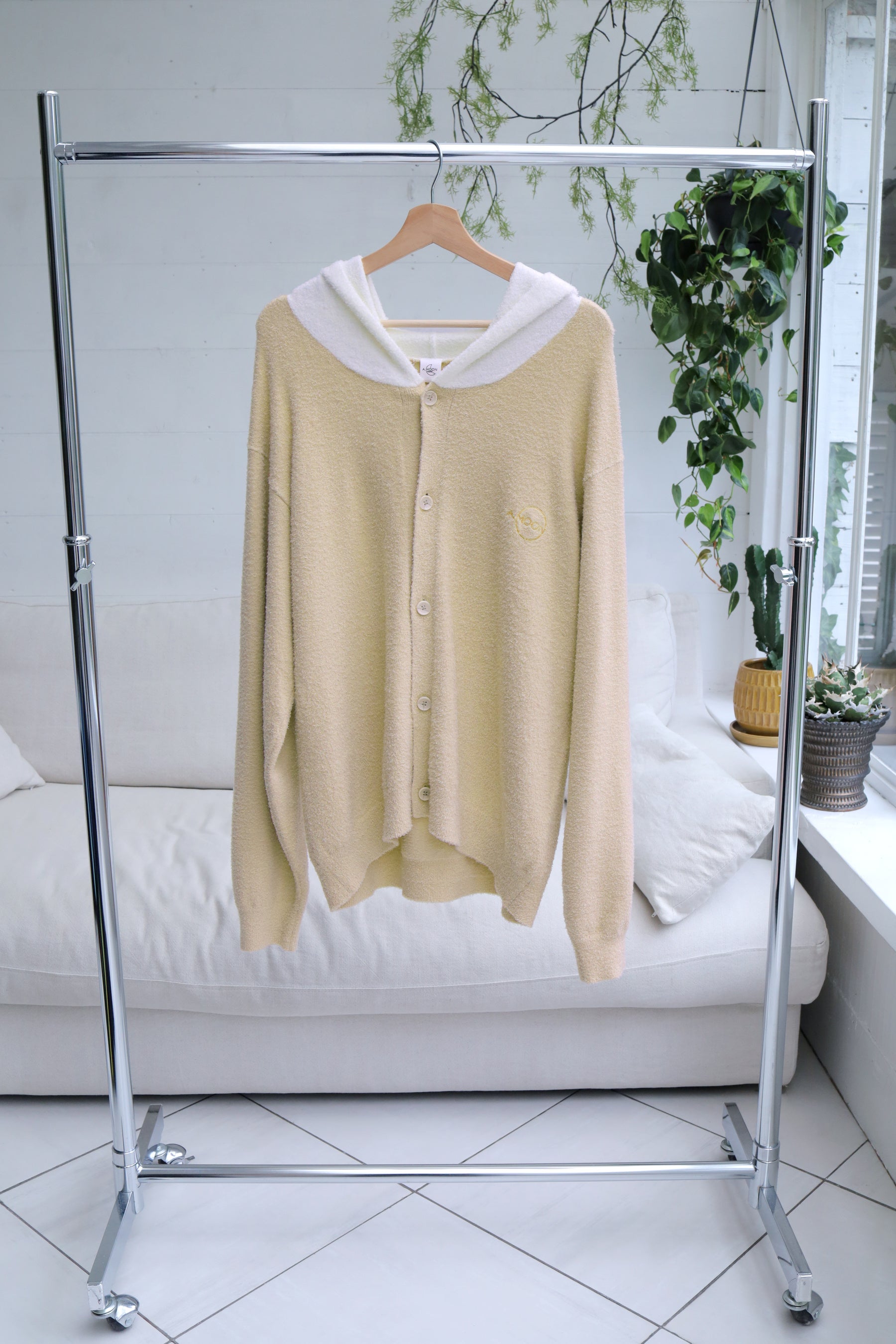 あつきくんが着用しているウェア「Fluffy Hoodie Cardigan」と