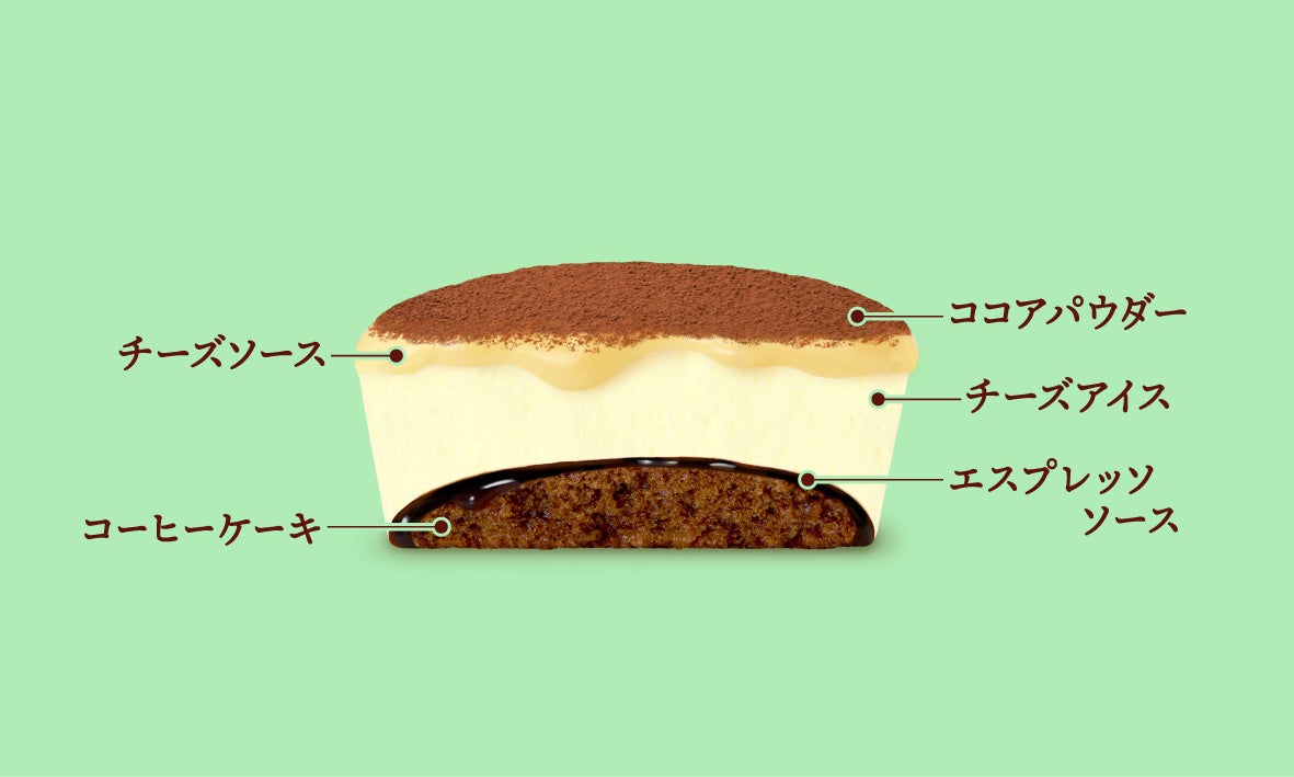 アイス部分は、北海道産のマスカルポーネチーズとクリームチーズをたっぷりと使用。さらに、華やかな香りが楽しめるマルサラワイン※を配合することで、大人向けのアイスに仕上げています。また、空気を多く含ませることで、ティラミスらしい軽いなめらかな食感を再現しています。